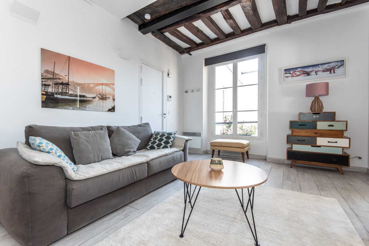 Furnished apartment located on rue Pecquay in Paris 4th arrondissement close to metro stations Hôtel de Ville (line 1 and line 11) and Rambuteau (line 11).