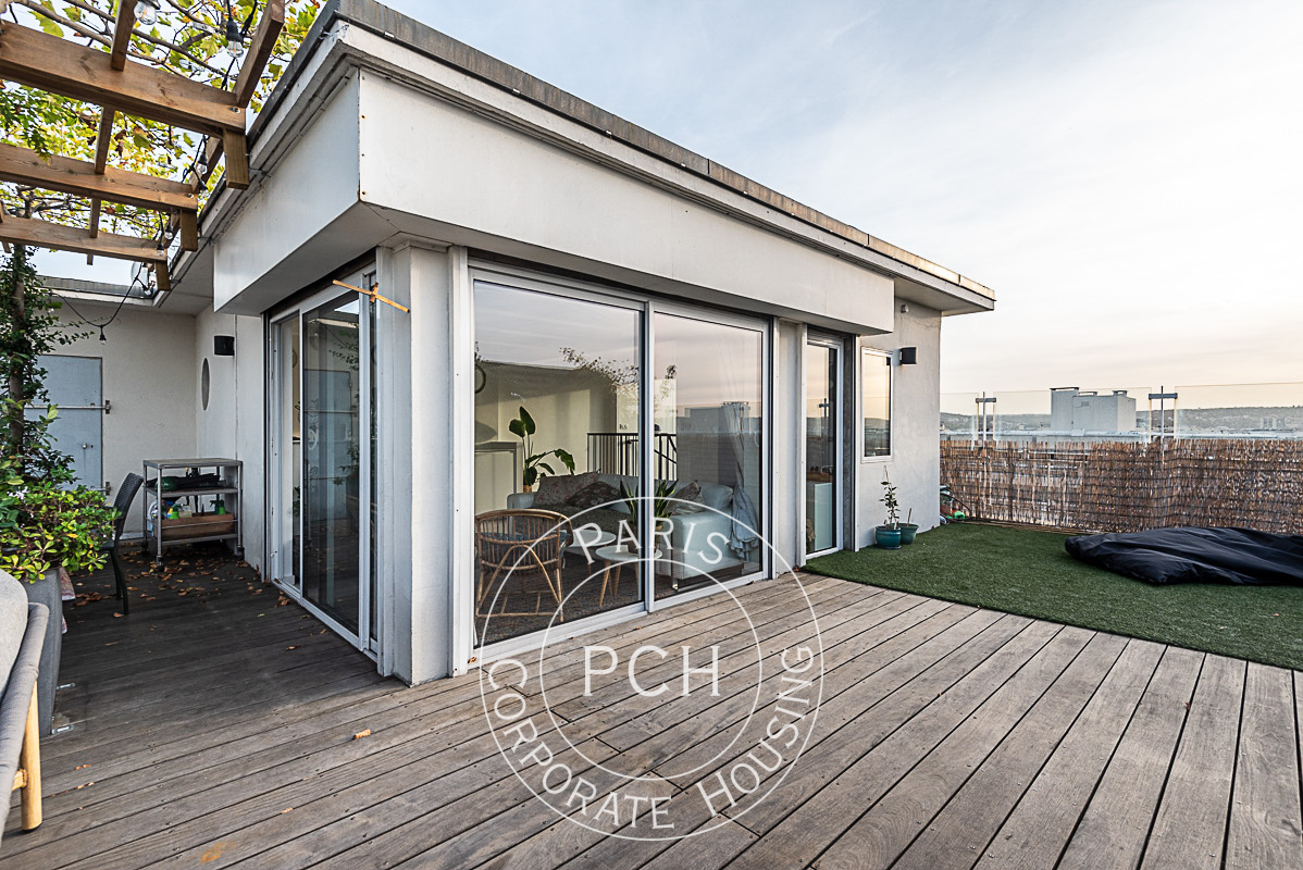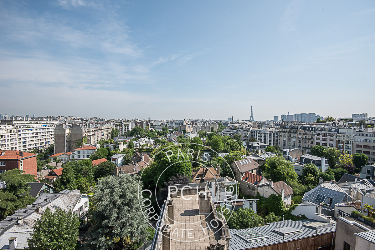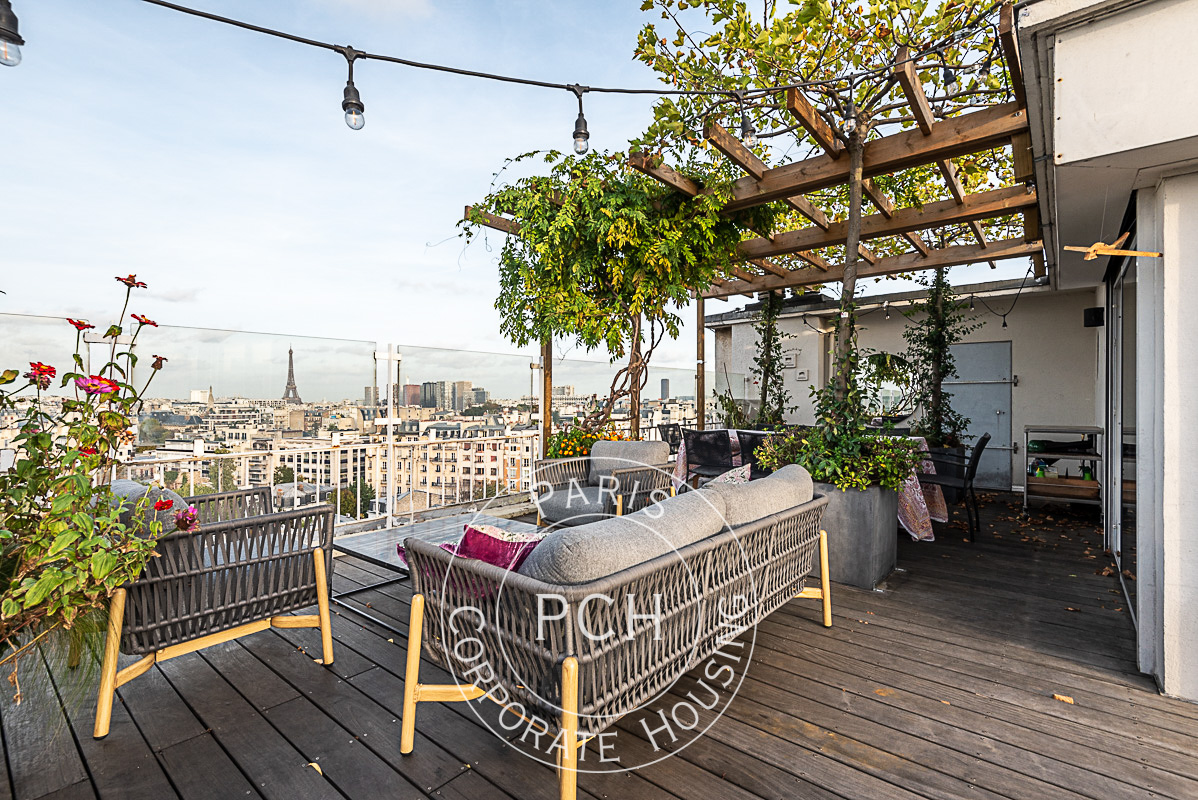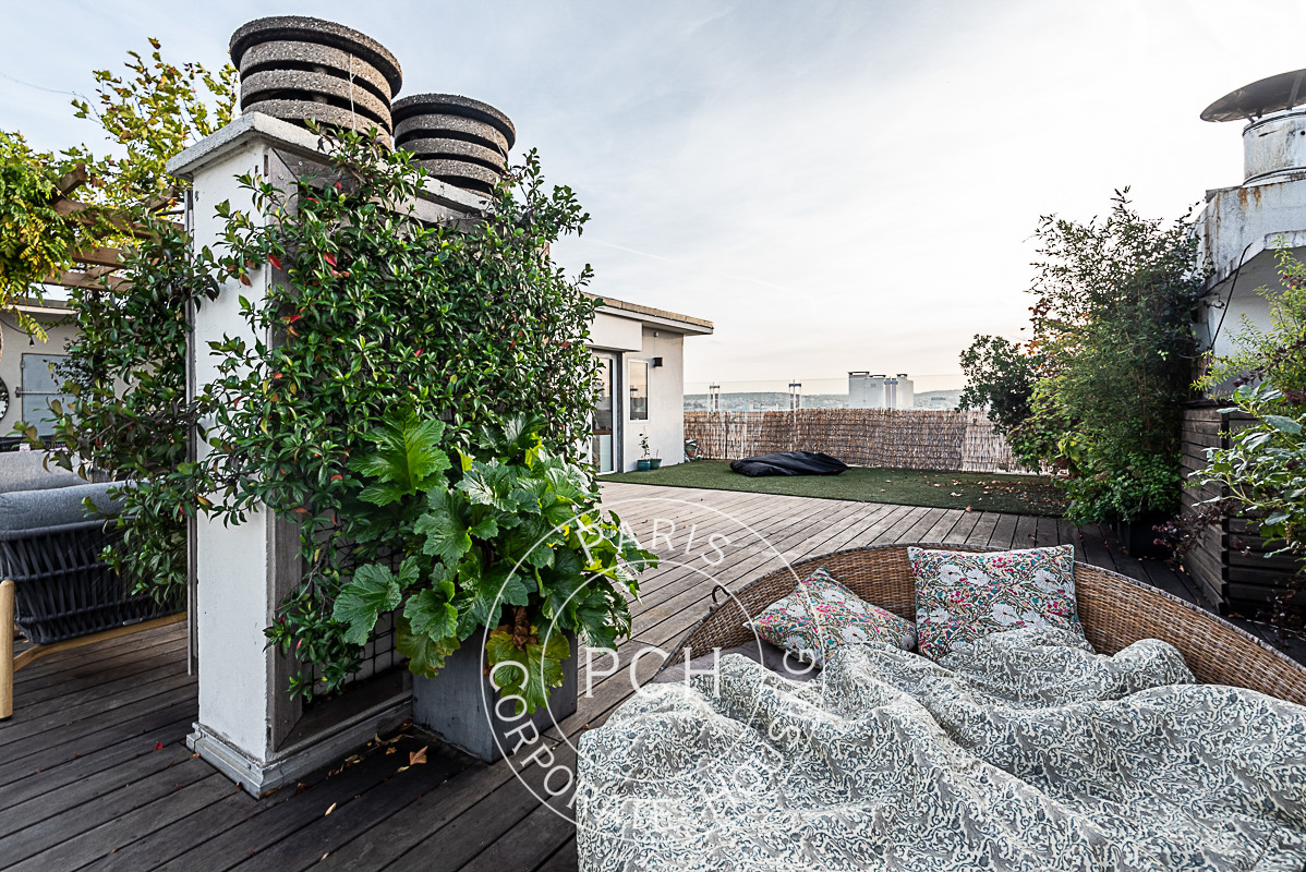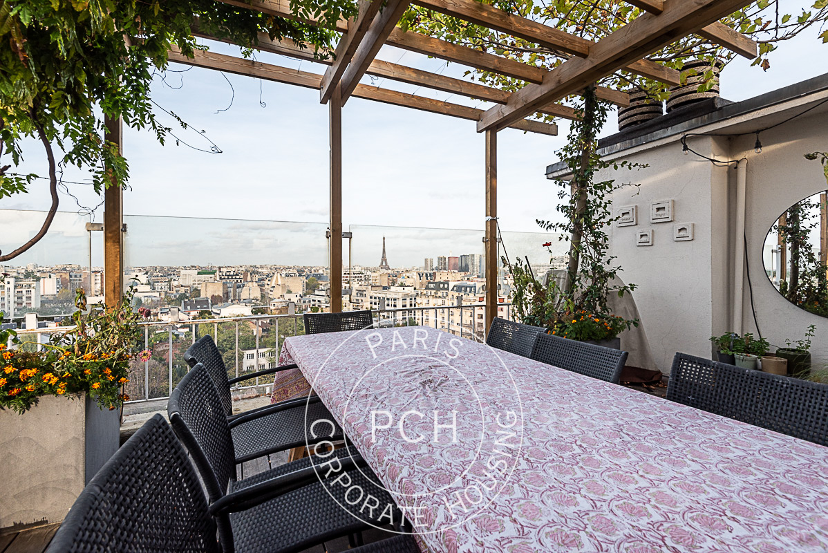 • Ce toit-terrasse, qui dispose de nombreux équipements extérieurs (table de jardin et barbecue entre autres) offre une vue magnifique à 360° sur tout Paris et ses monuments (Montmartre, Tour Eiffel), au calme et sans vis à vis. Très rare.