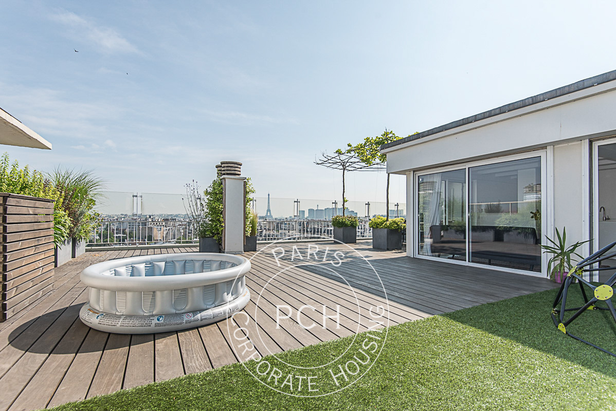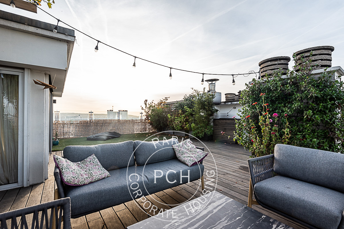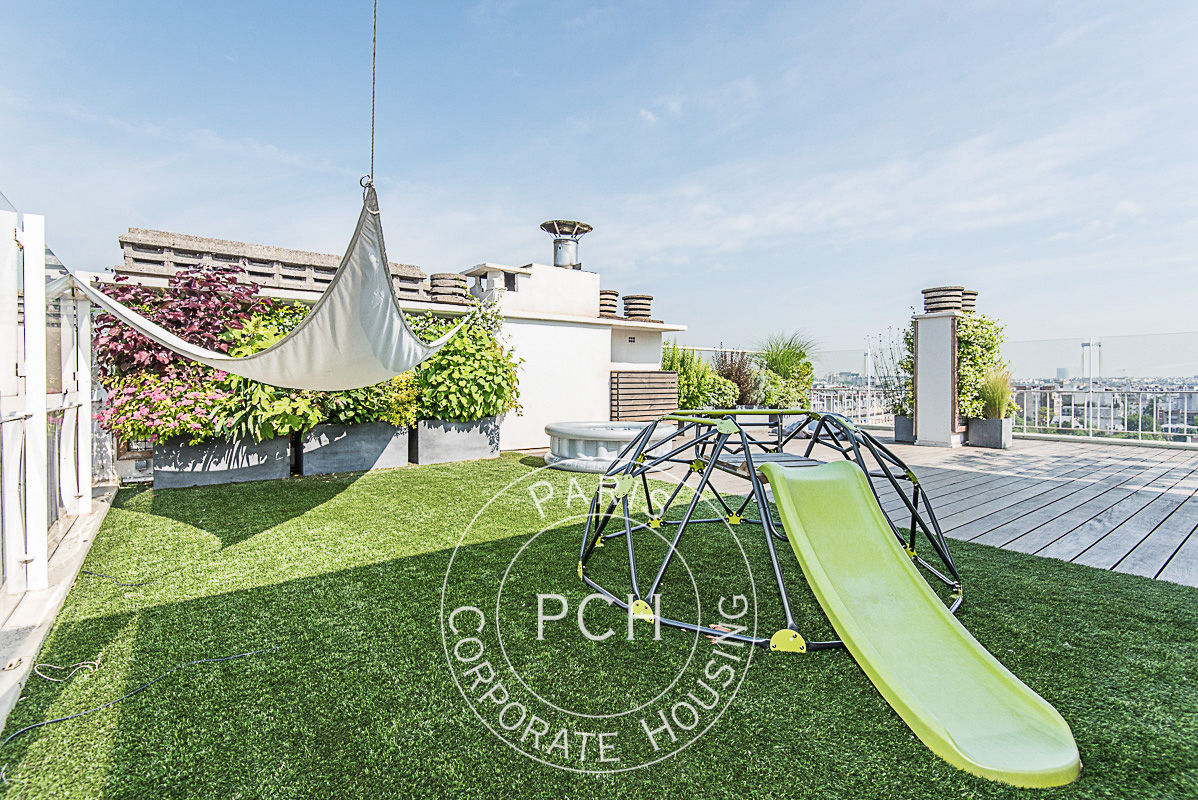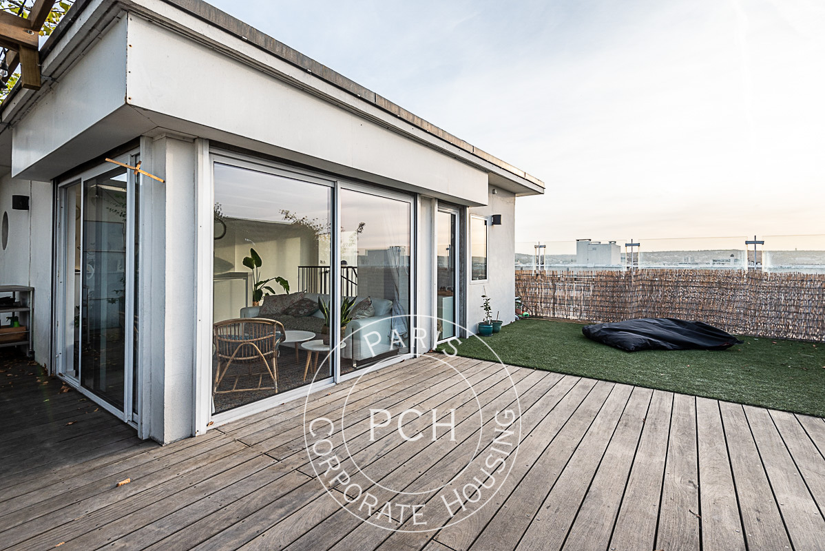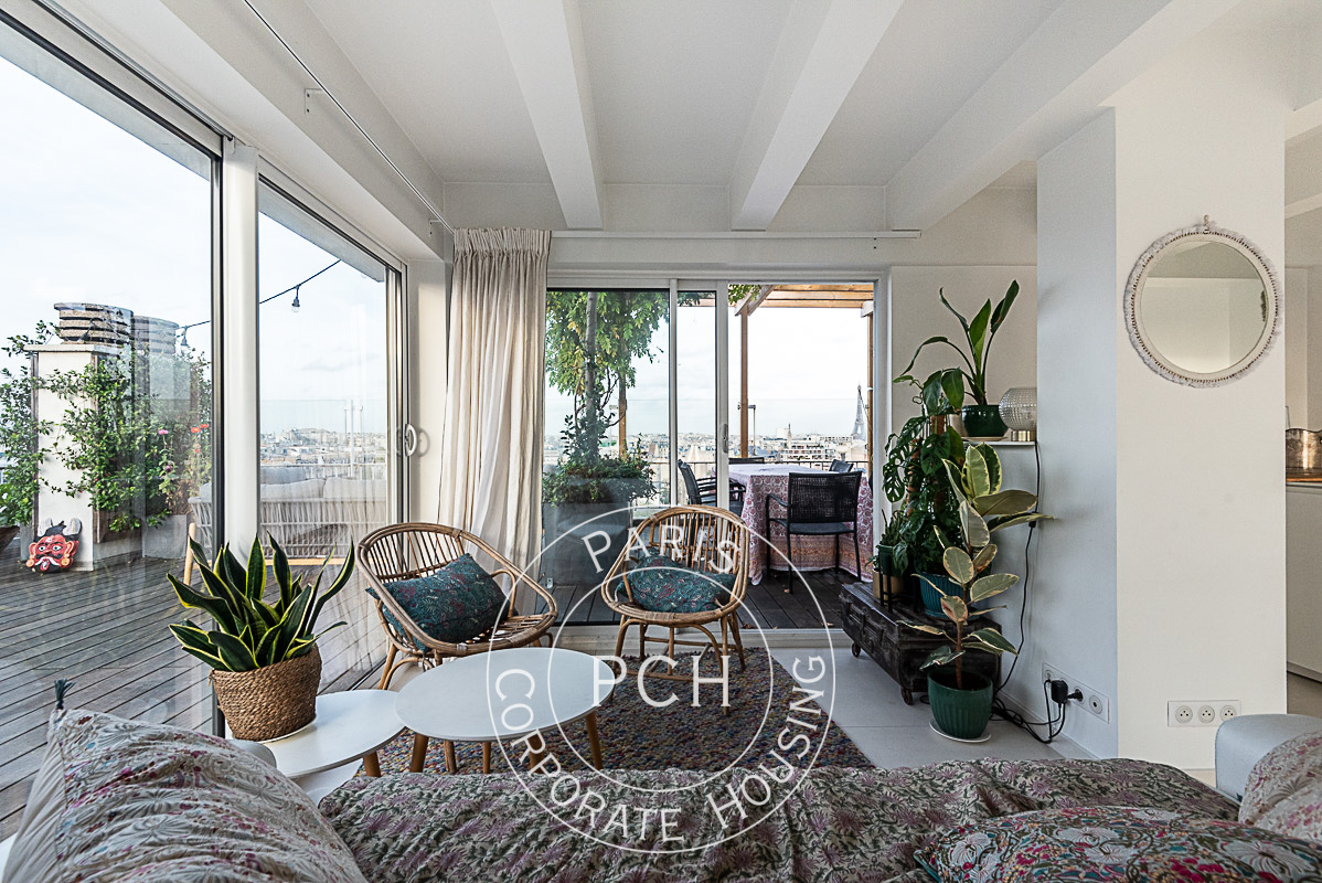 • Ce toit-terrasse, qui dispose de nombreux équipements extérieurs (table de jardin et barbecue entre autres) offre une vue magnifique à 360° sur tout Paris et ses monuments (Montmartre, Tour Eiffel), au calme et sans vis à vis. Très rare.