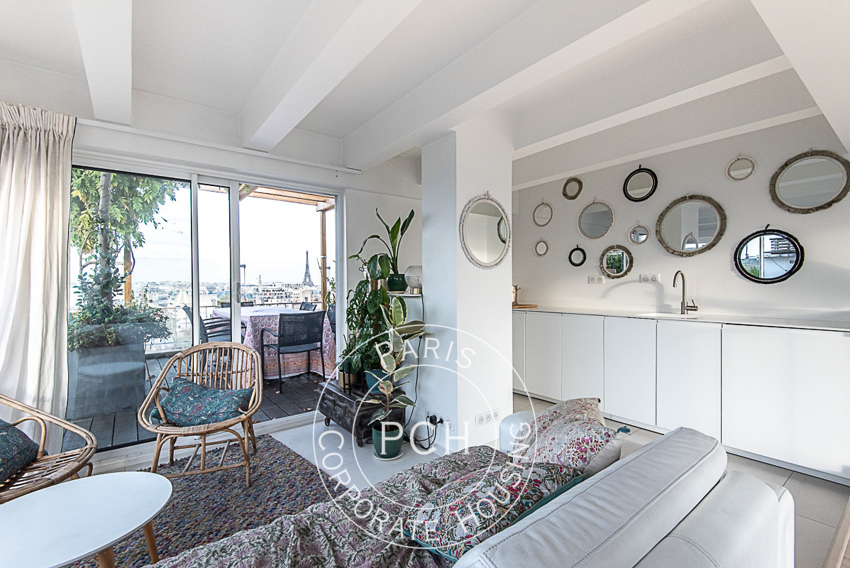 Appartement meublé situé dans le 16ème arrondissement, à proximité immédiate de la station Exelmans (Ligne 9), et à 5 min à pied de la station Michel-Ange (Ligne 10 et 9) et de la station Pont de Garigliano (RER C).