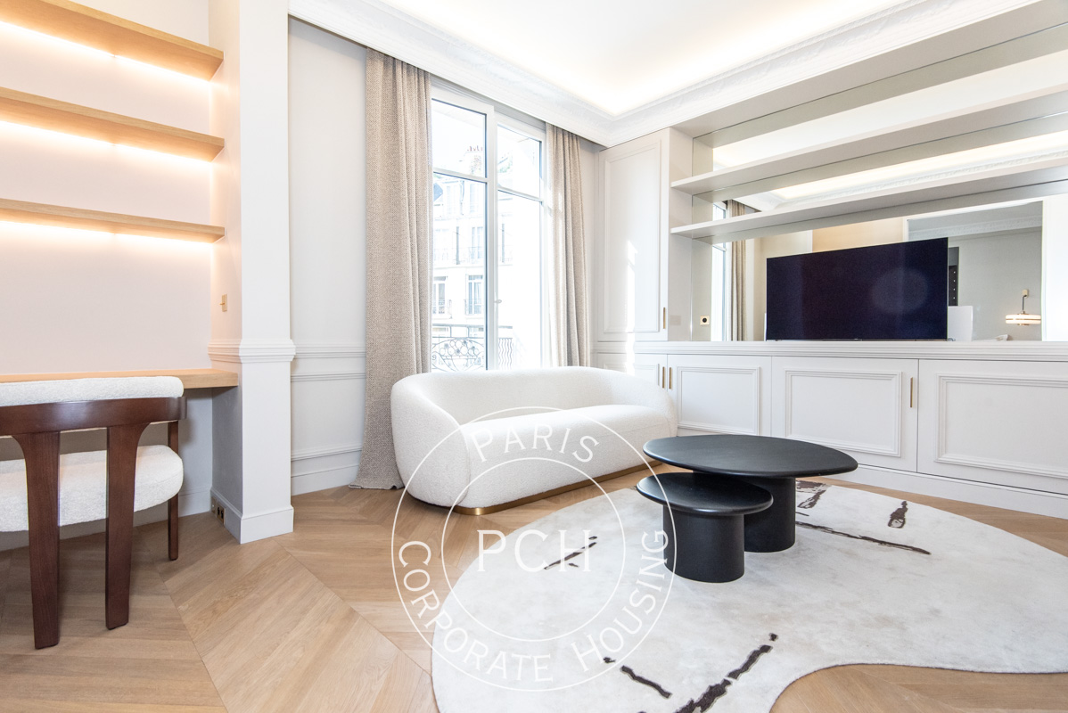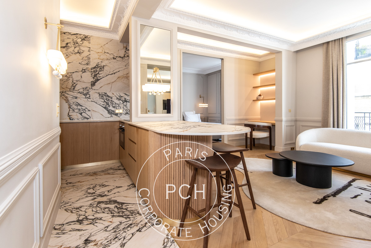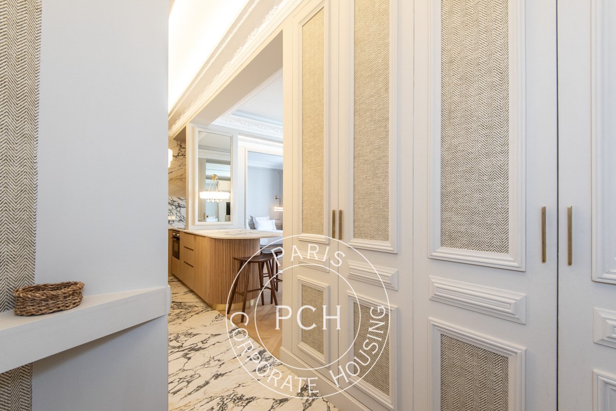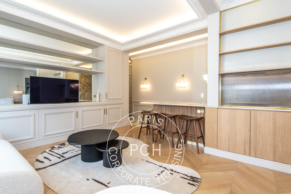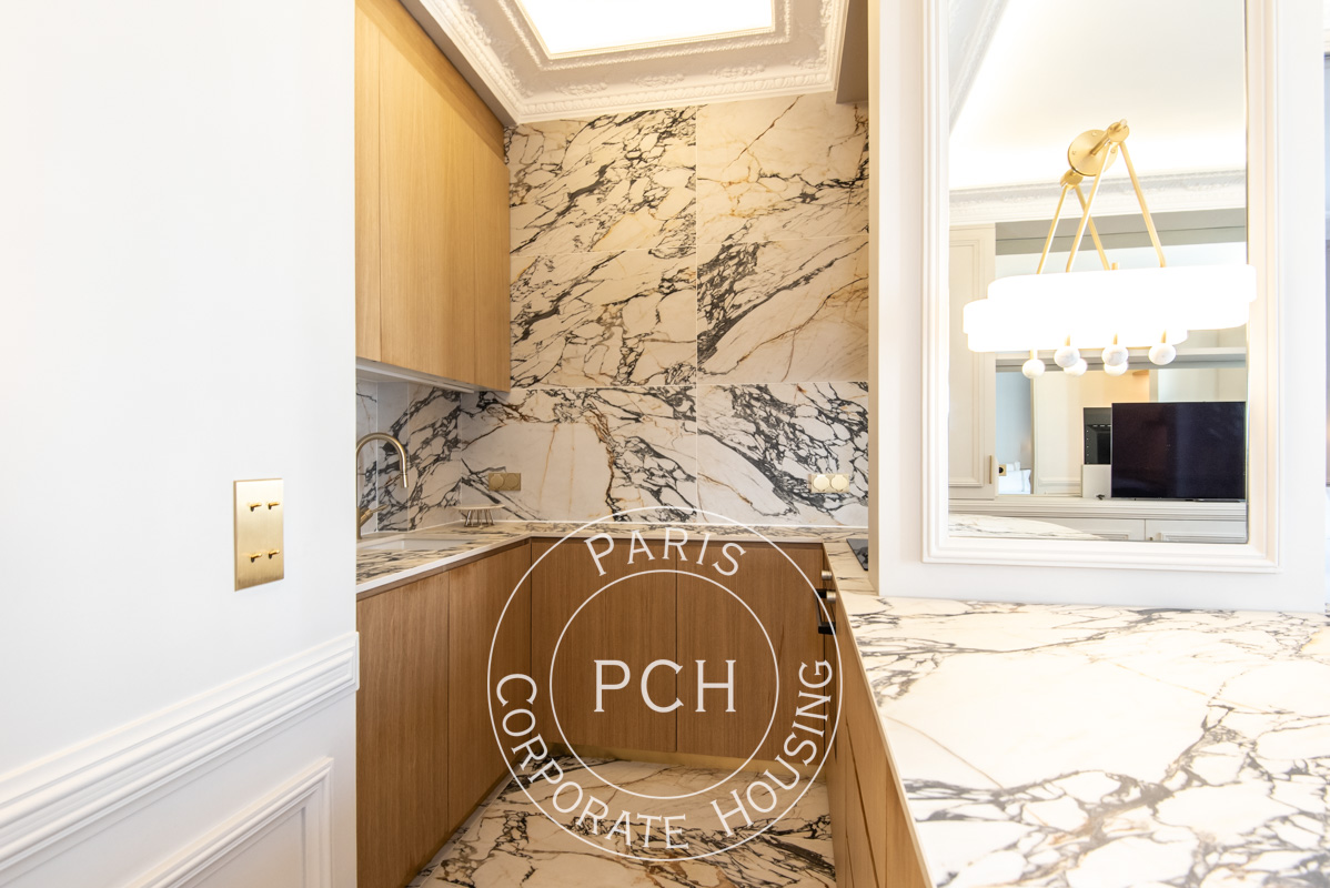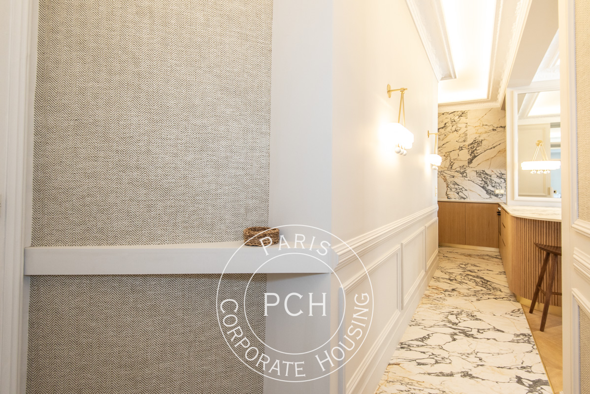 Furnished apartment located on avenue de Lamballe in Paris 16th arrondissement close to metro stations Passy (line 6), Avenue du Président Kennedy (RER C) and La Muette (line 9).