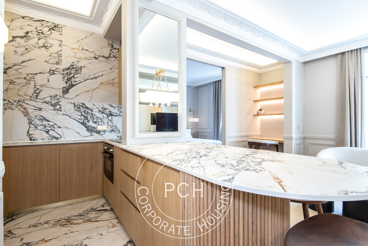 - A fully-equipped semi open-plan kitchen. Brand new high-end appliances.