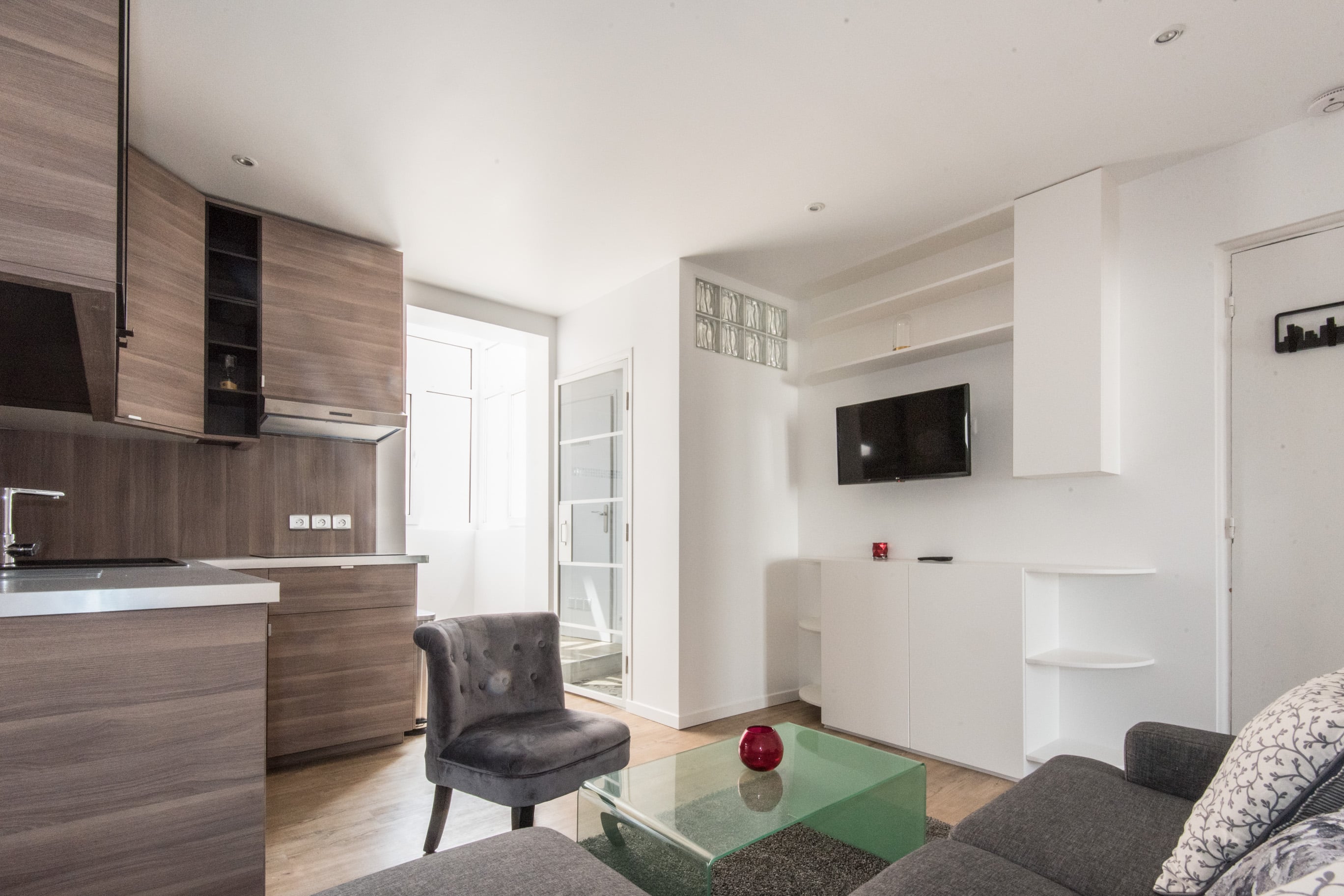Fully renovated furnished apartment, with contemporary decoration, located on rue Baudin in Levallois-Perret near the metro station Pont de Levallois-Bécon (line 3), the Clichy-Levallois train station (Transilien L) and the bus line 53.