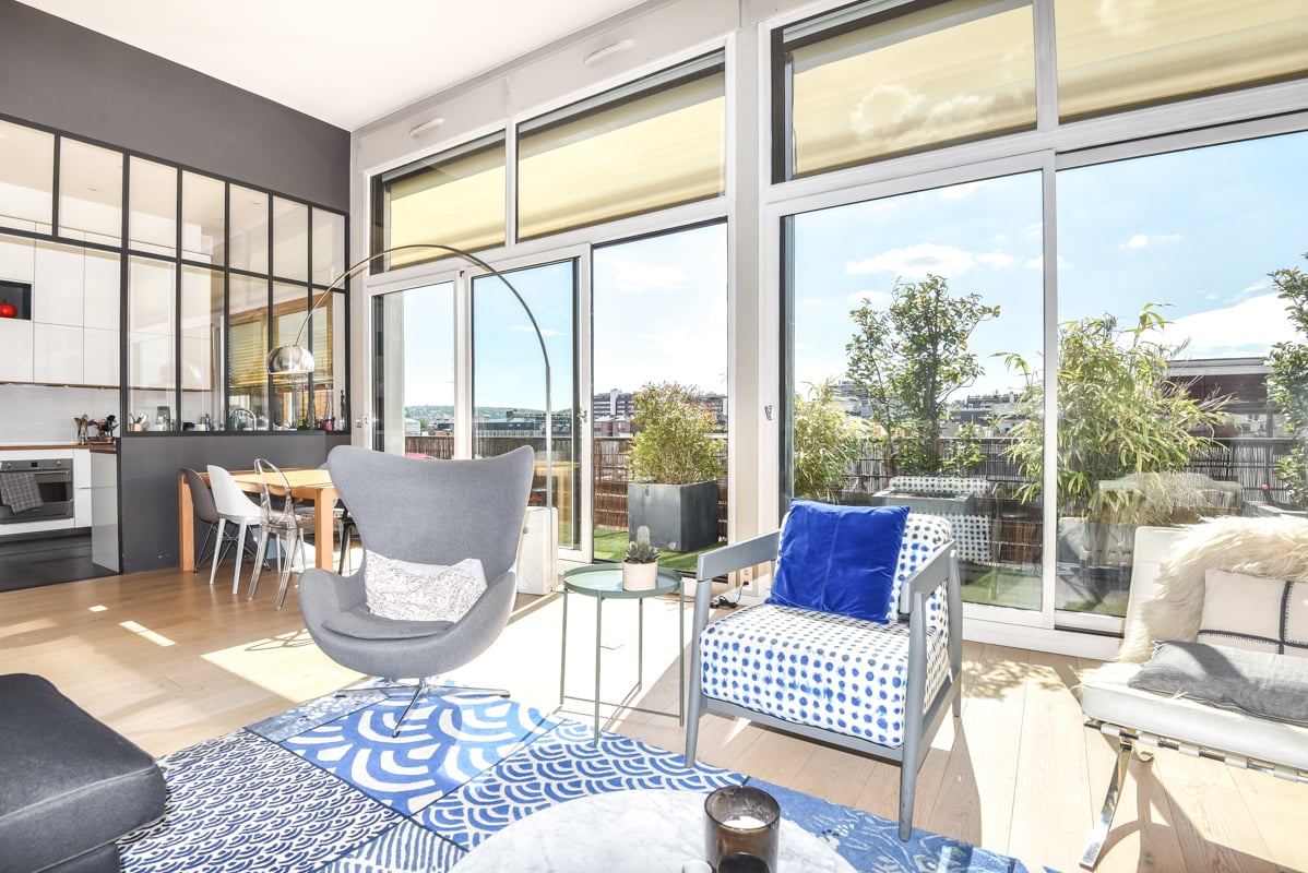 Exceptional furnished apartment with 80 sqm rooftop, 20 sqm balconies, 4m-high ceiling with unobstucted view, West facing.