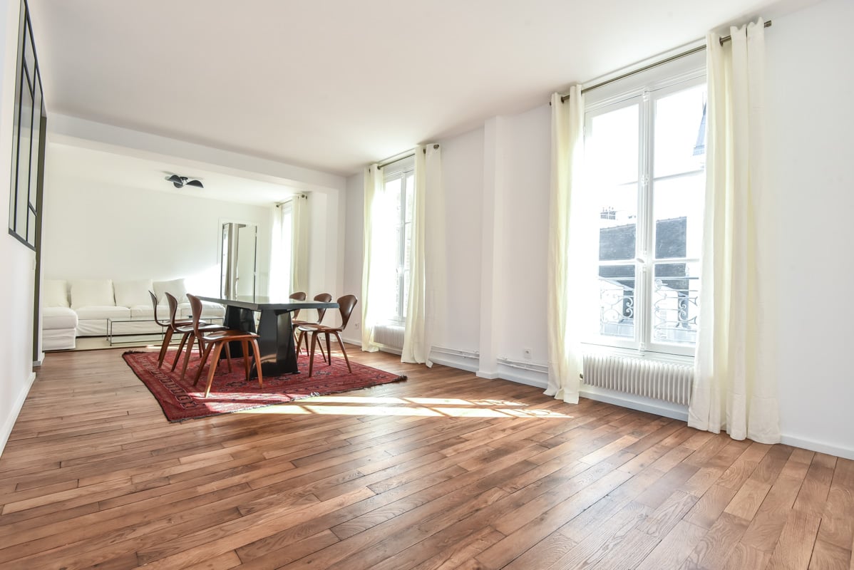 - On the 4th floor, a spacious living room with a splendid view over Paris.