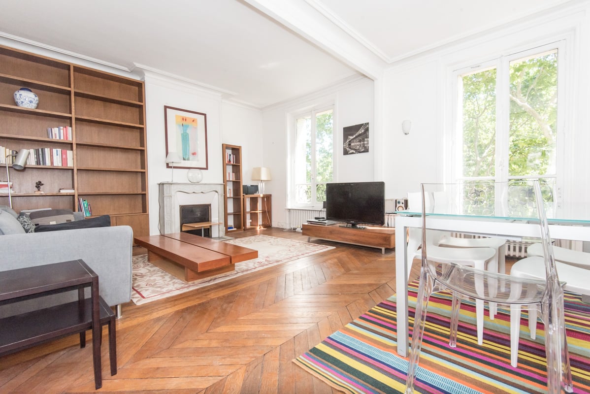 - A large living room of 26 sqm with a decorative fireplace and an unobstructed view over Avenue de Suffren.