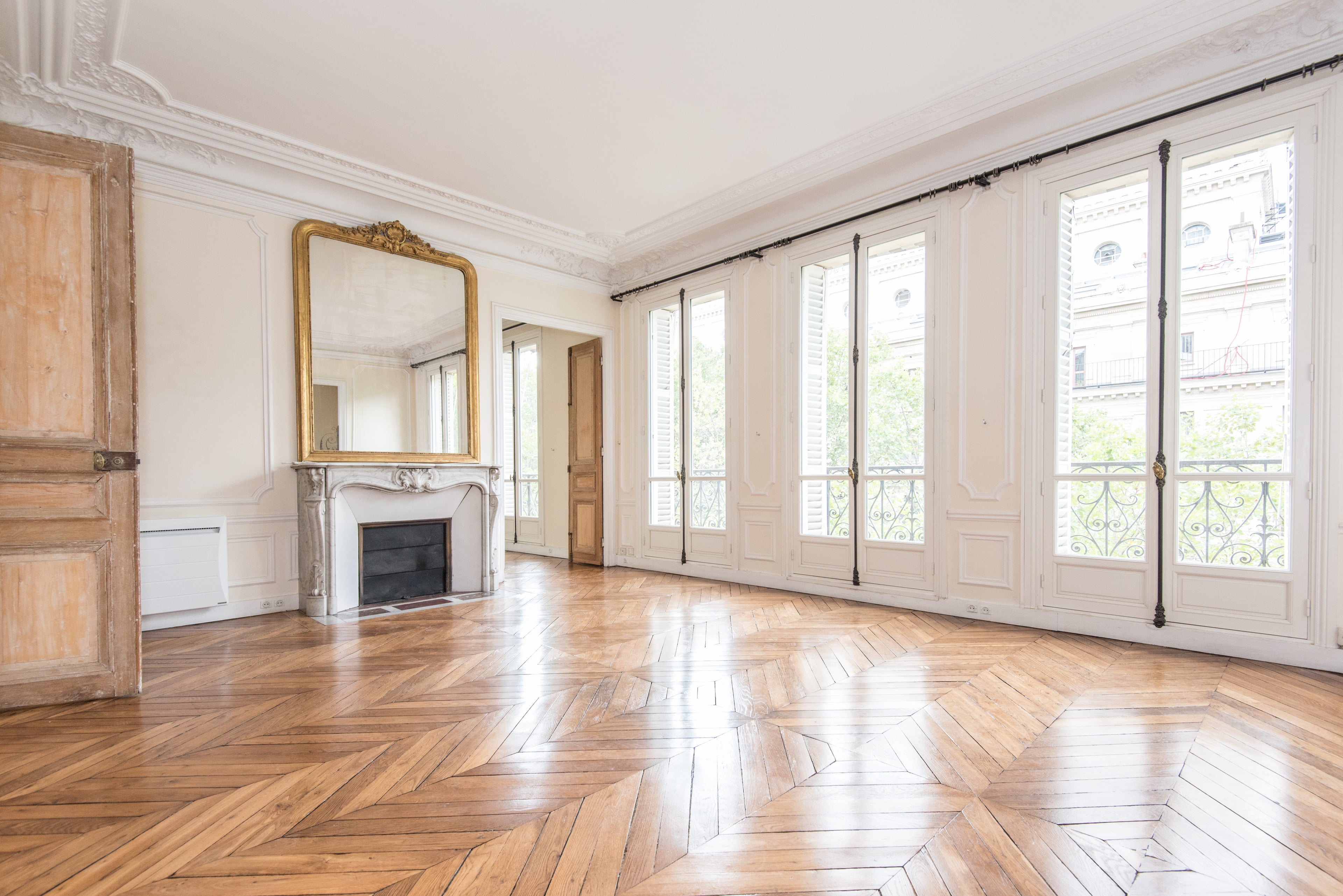 There is a typical French hardwood flooring in the whole apartment.