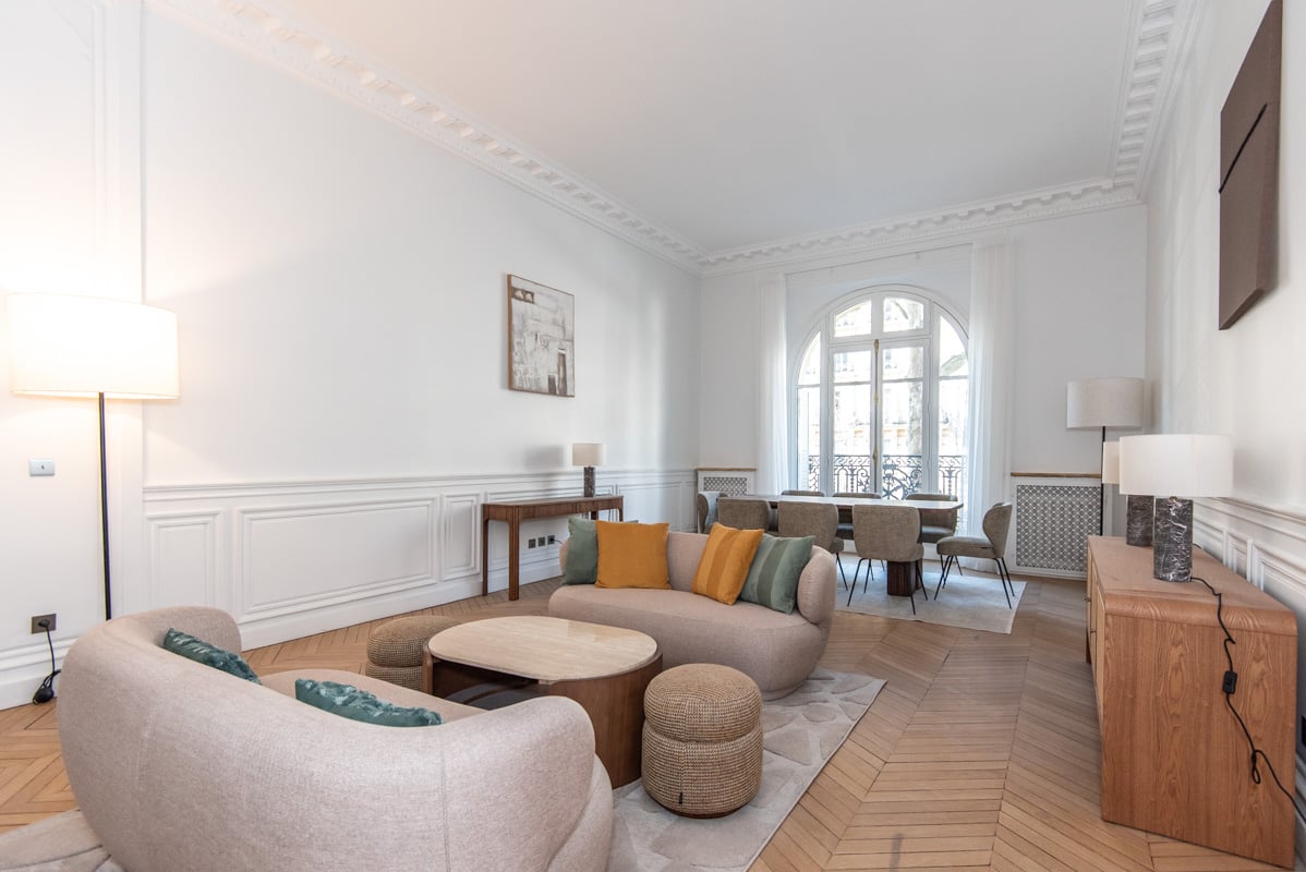• A living and dining area of about 70 m², with 3 large full-height French windows, efficient soundproofing.
