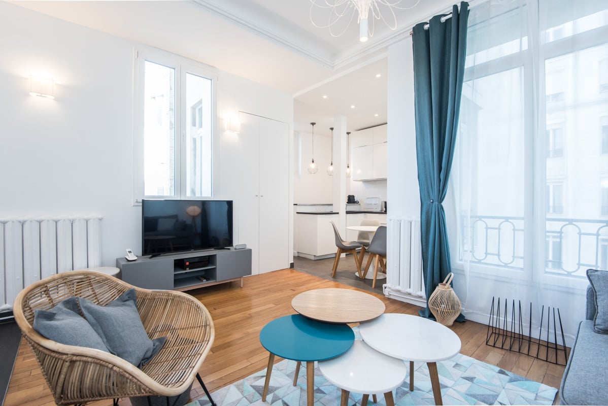 Furnished apartment located rue Alfred Roll in Paris in the 17th arrondissement near the station Péreire (line 3 and RER C) and shops in the Place du Maréchal Juin.