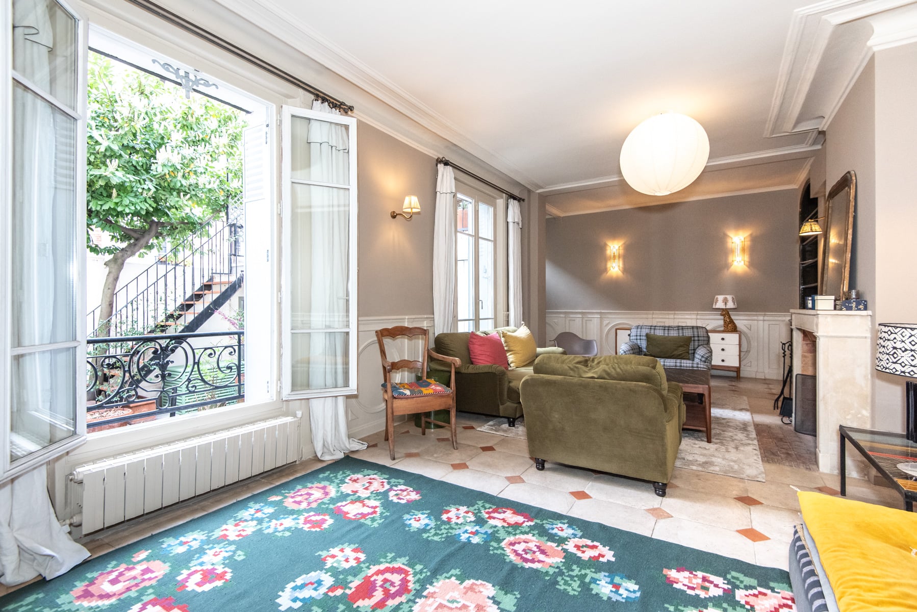 Located on a residential street in the 14th arrondissement, close to local shops, public transport, and schools, this magnificent family home with a terrace impresses with its generous proportions and functional layout.