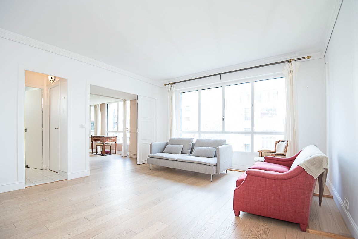 - A spacious, bright living room facing east, with an unobstructed view of the Eiffel Tower.