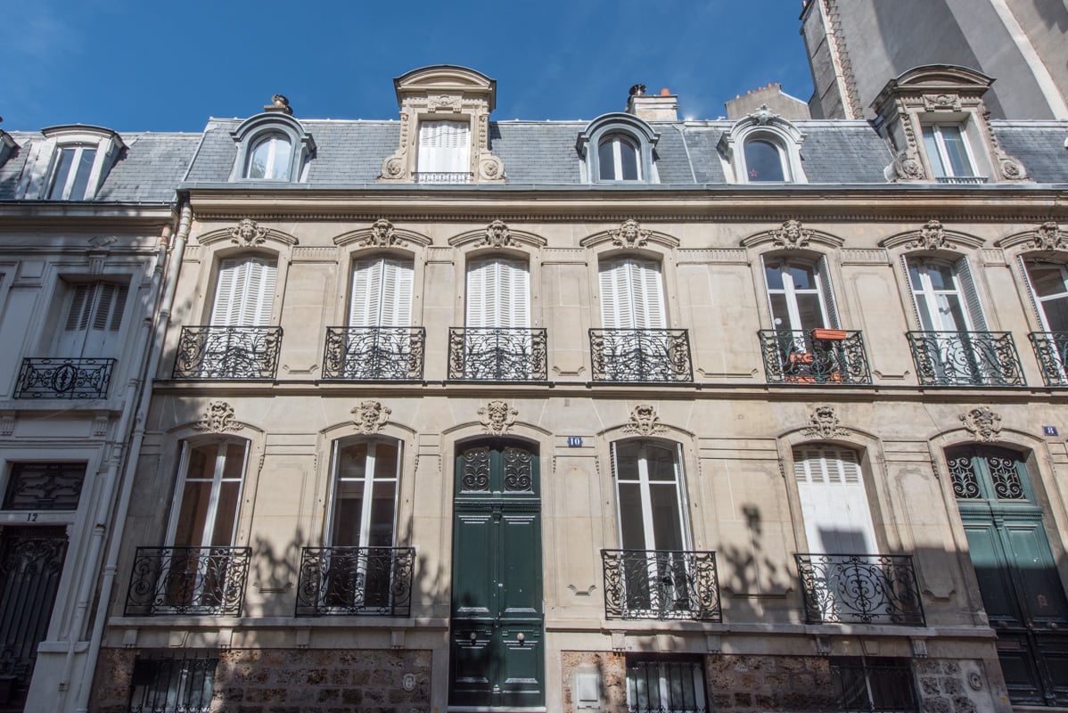 This 310 sqm (~3 335 sq ft) unfurnished hôtel particulier is located on a private street in the 16th arrondissement, an upscale neighborhood close to Porte Maillot (line 1, RER C).