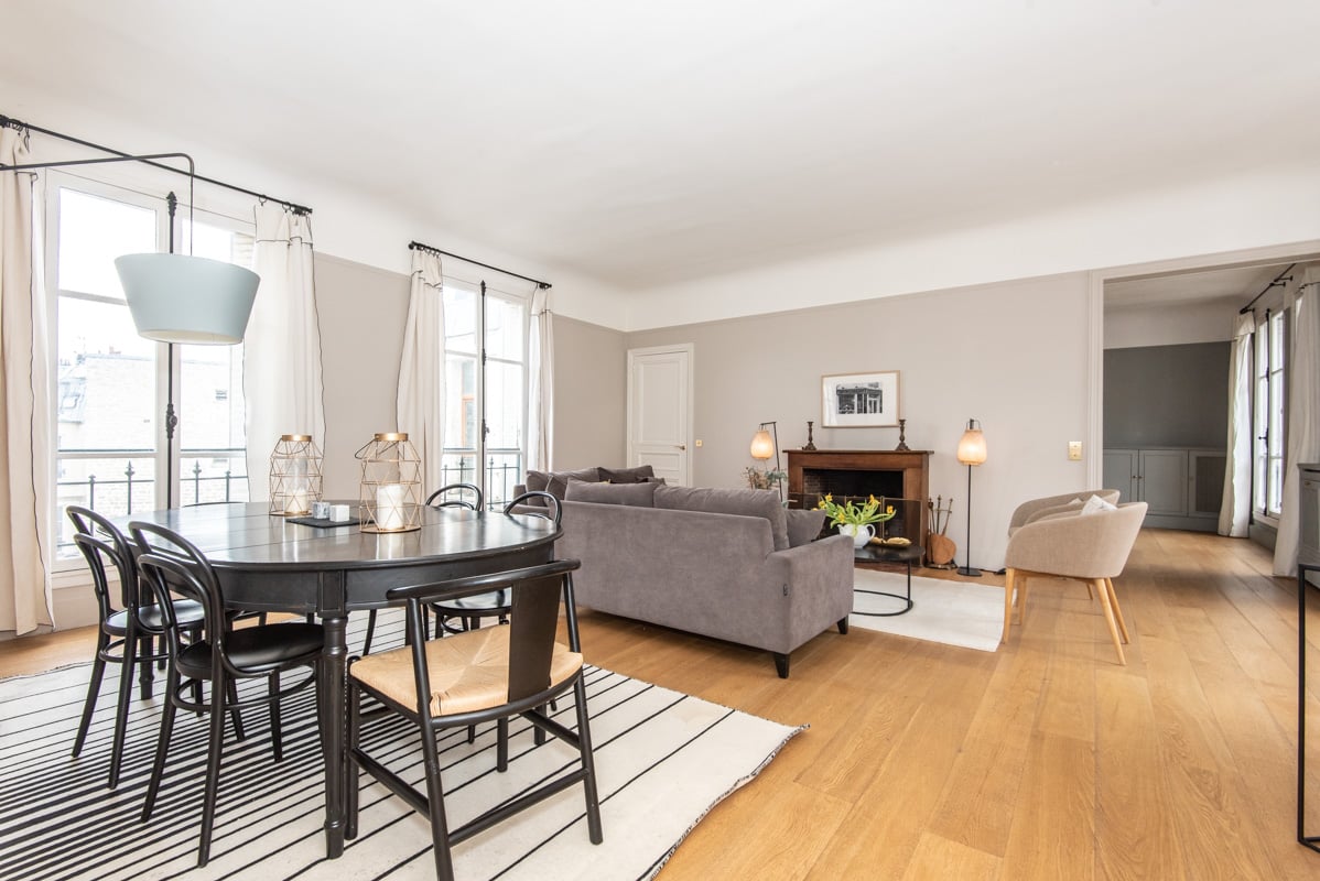 Furnished apartment located on rue d'Assas in Paris 6th arrondissement, close to the shops of rue de Vaugirard and close to metro stations Saint-Placide (line 4), Saint-Sulpice (line 4) and Rennes (line 12), with common areas in excellent conditions. The apartment was recently renovated. Upscale furniture, refined, contemporary, elegant decoration. Hardwood flooring, moldings. High ceilings.