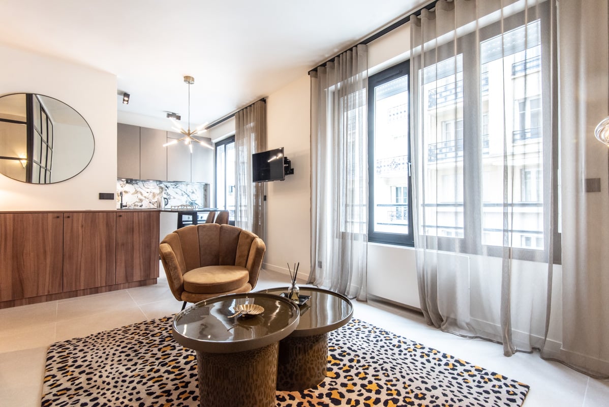 - A fully-equipped open-plan kitchen. Brand new high-end appliances.