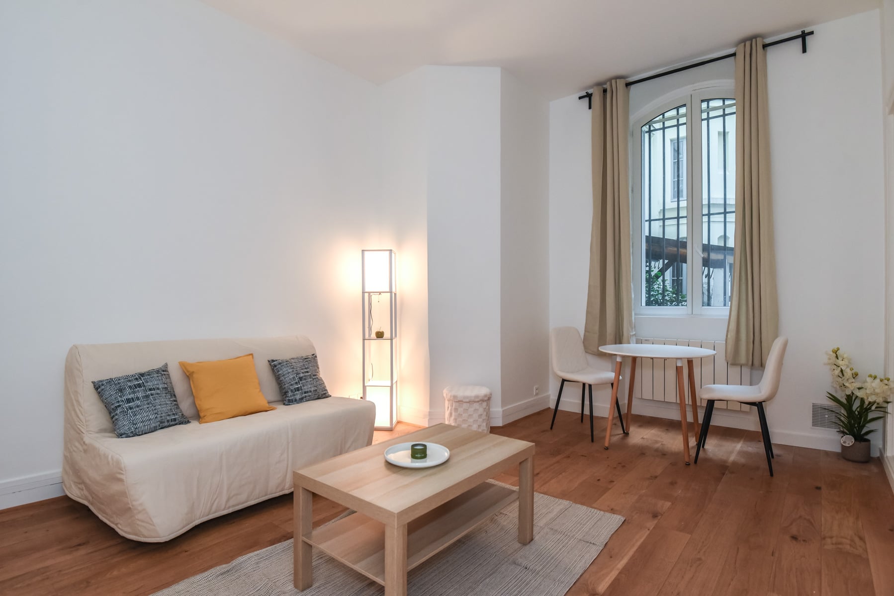Quiet, overlooking the courtyard. Hardwood floors.