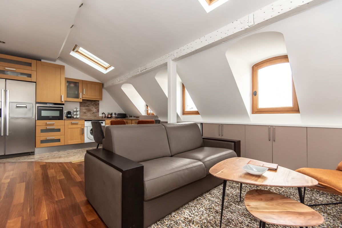 - A fully-equipped open-plan kitchen. Brand new high-end appliances.