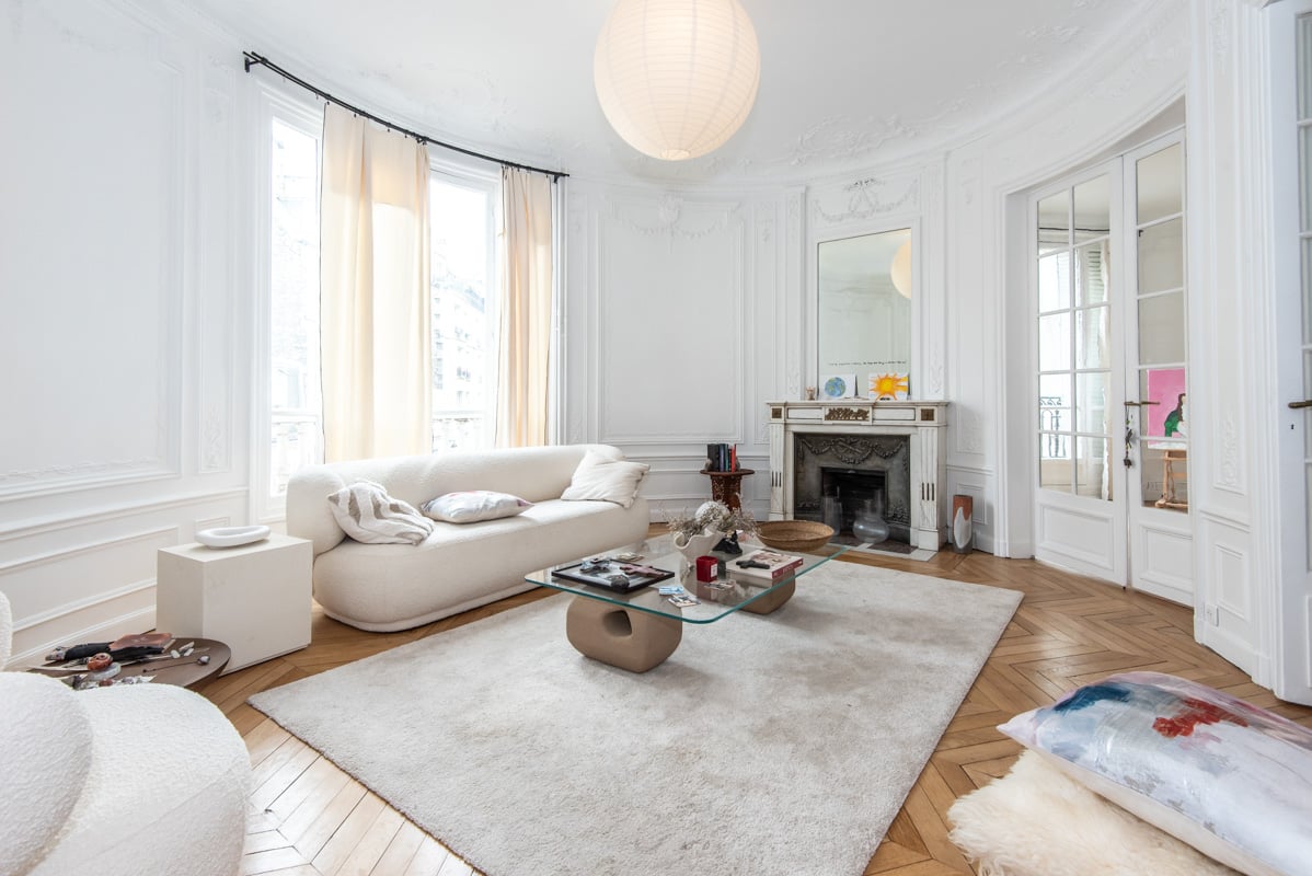 This family apartment combines the charm of the old with parquet floors, moldings, a fireplace, and a beautiful ceiling height, along with a lovely contemporary renovation.