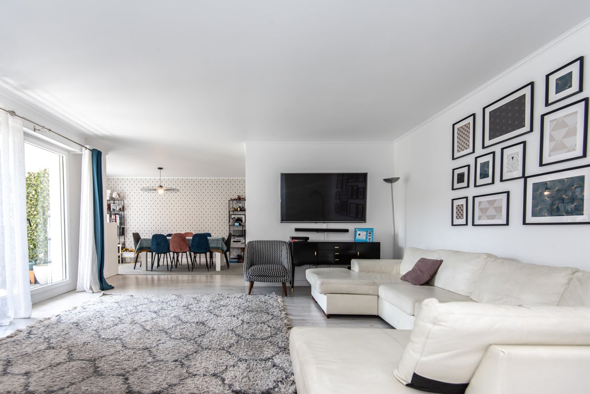 - A large living room with dining area. South-facing balcony. Unobstruted view. Very bright.