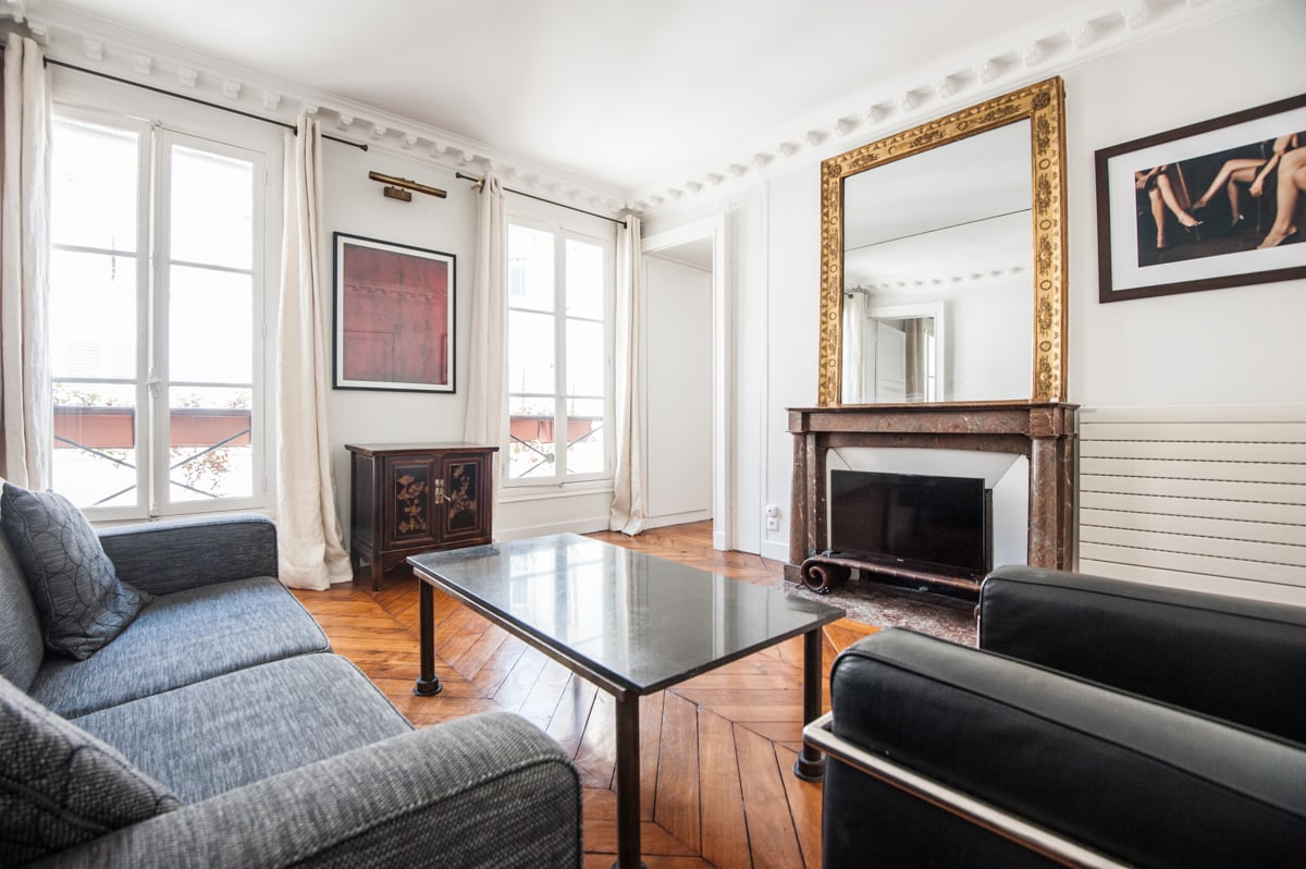 Located rue du Bac, where the 7th meets the 6th, a most upscale area, with high-end stores and shopping venues, numerous groceries, and the Paris landmark cafés and restaurants.