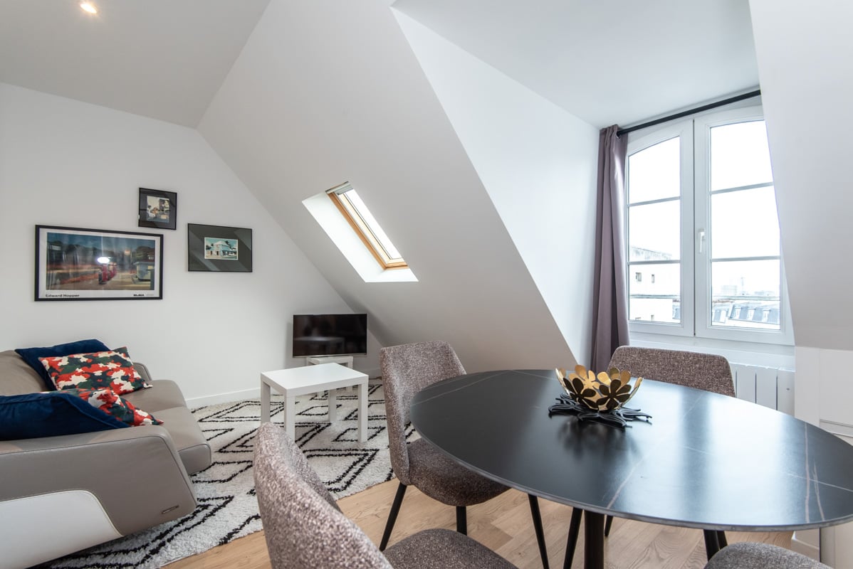 In the immediate vicinity of public transport and shops. Located on the sixth and top floor with elevator in a beautiful, secure and well-maintained building. Stunning furnished one-bedroom apartment in excellent condition, offering 35.71 sqm (Carrez law) and 43.62 sqm of floor area, séduces with its exceptional brightness and absolute calm.