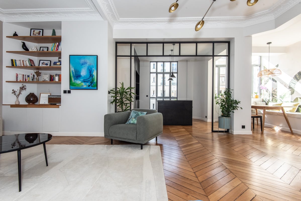 In a Haussmann building, with common areas in good conditions. The apartment was recently renovated. Upscale furniture, refined, elegant decoration. Hardwood flooring, moldings.