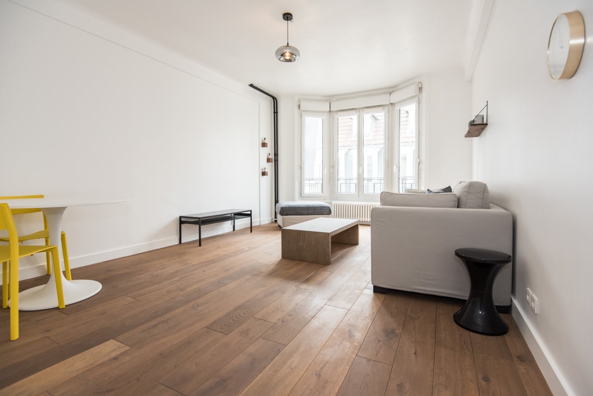 Appartement entièrement refait à neuf, meublé situé rue Marie Stuart à Paris dans le 2e arrondissement, à l’angle avec la rue Montorgueil et ses nombreux commerces.