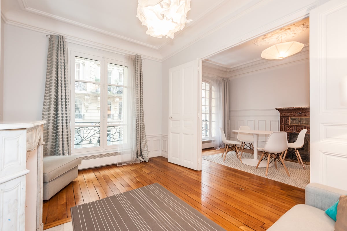 Dans un immeuble en pierre de taille, avec des parties communes en bonnes conditions. L'appartement a été rénové récemment. Mobilier neuf, décoration contemporaine. Parquet, moulures, cheminée.