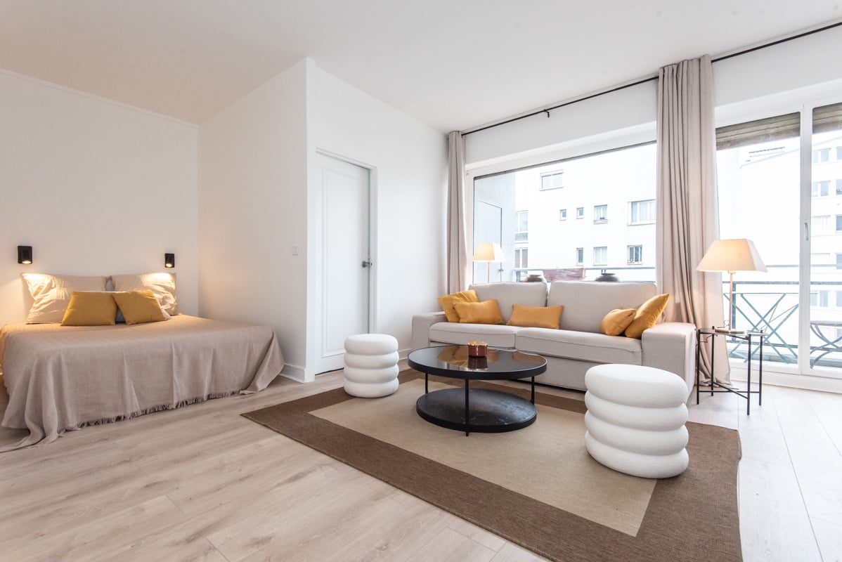 - Un grand séjour ouvrant sur un balcon. Vue dégagée.