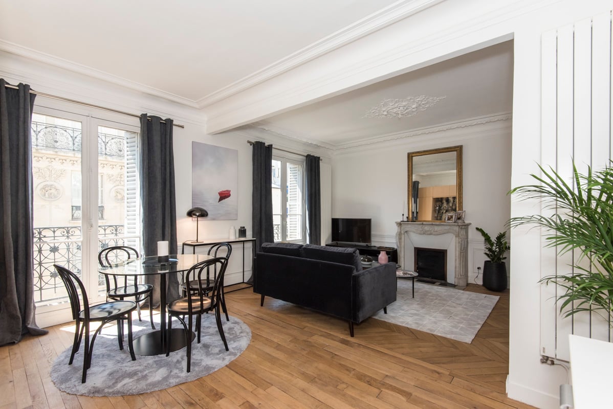 Dans un immeuble du début du 19e siècle, avec des parties communes en excellentes conditions. Au 4ème étage avec ascenseur. Appartement entièrement rénové. Mobilier haut de gamme, décoration raffinée, contemporaine, élégante. Parquet, moulures, cheminée.