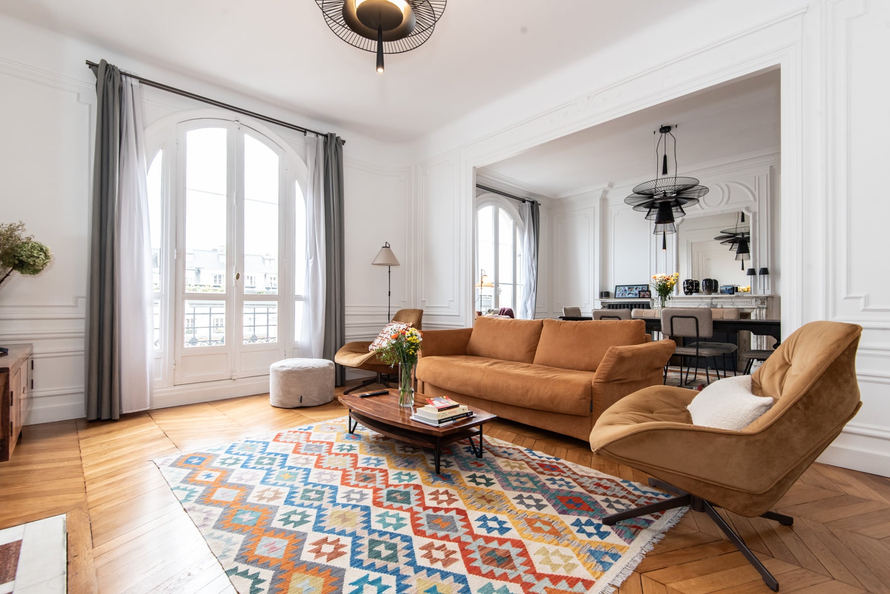 • Un double séjour lumineux. Mobilier contemporain. Tous les matériaux et les luminaires ont été sélectionnés avec le plus grand soin.