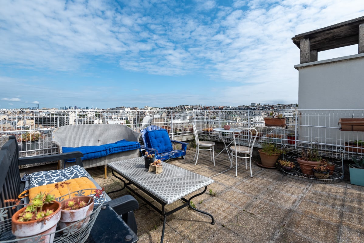 - Au 12e étage, l'appartement dispose de 2 belles terrasses aménagées avec une vue dégagée sur tout Paris.