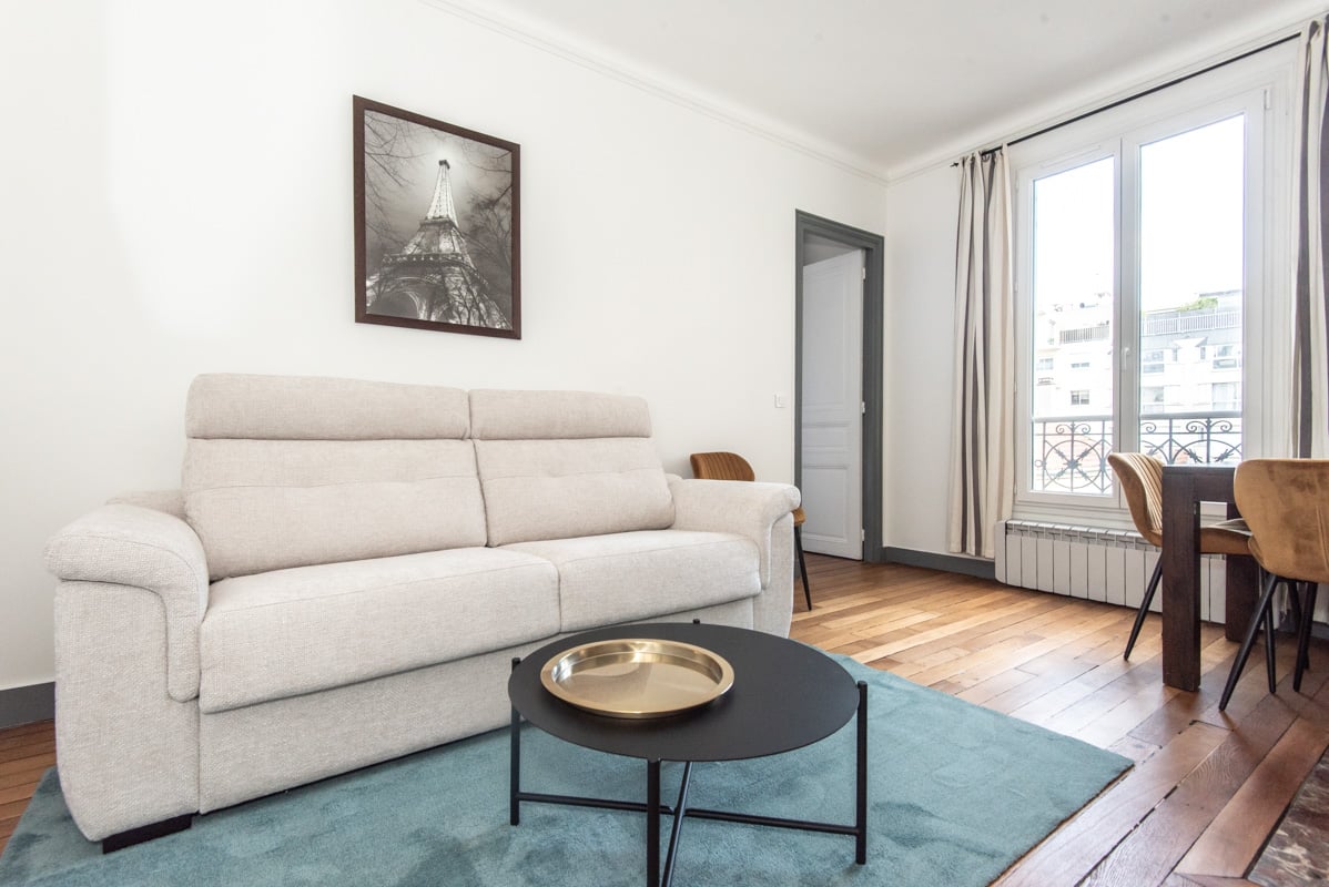 Bel appartement meublé complètement neuf situé rue de la Croix Nivert à Paris dans le 15e arrondissement à proximité de la station Cambronne (ligne 6). Parquet.