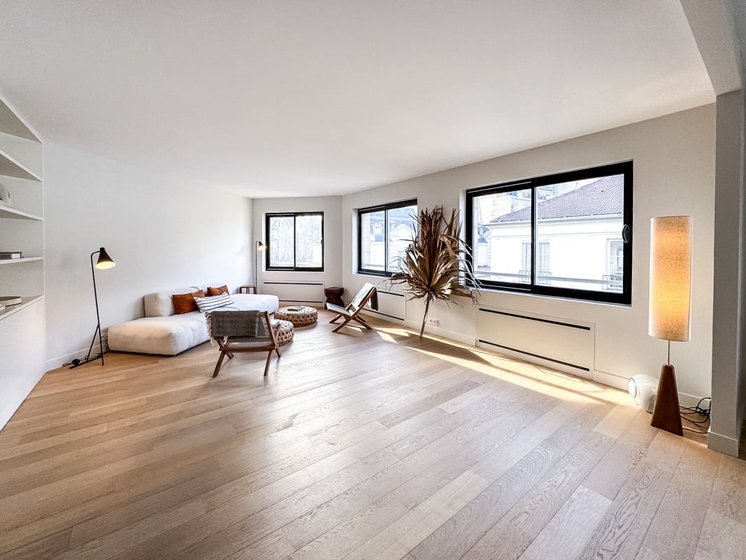 Dans un immeuble des années 60, avec des parties communes en excellentes conditions. Mobilier haut de gamme, décoration raffinée, élégante. Parquet.