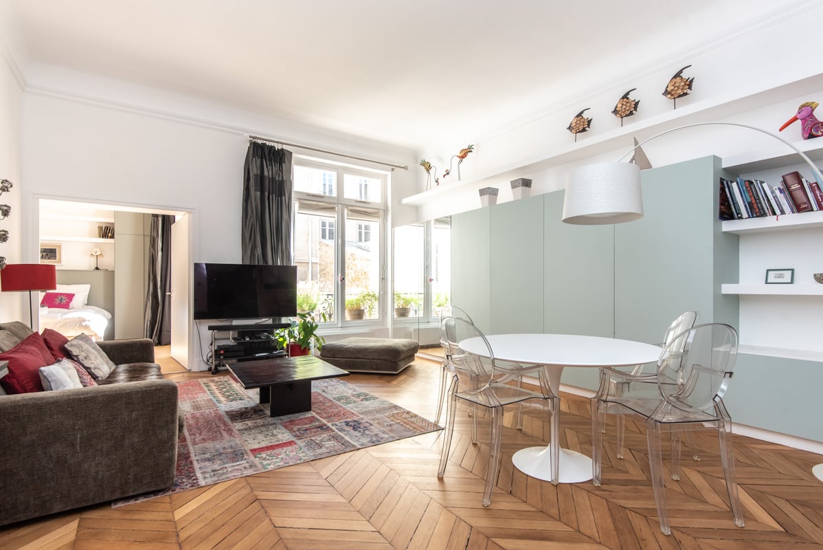 Appartement meublé situé rue de Téhéran à Paris dans le 8e arrondissement à proximité des stations Monceau (ligne 2), Villiers (ligne 2 et ligne 3) et Europe (ligne 3), à proximité directe de l'hôtel de Camondo.