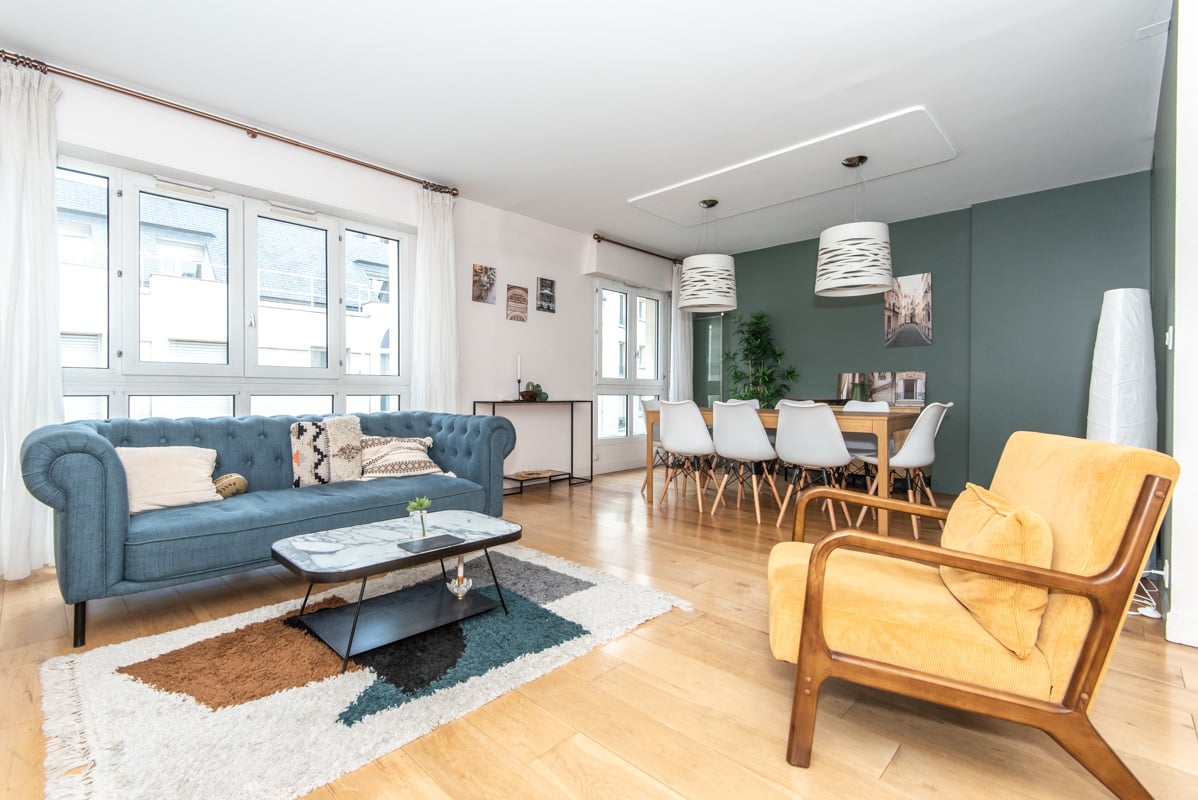 Beau duplex meublé situé rue du Grand Veneur à Paris dans le 3e arrondissement à proximité de la station Chemin Vert (ligne 8). Mobilier haut de gamme, décoration élégante. Parquet.