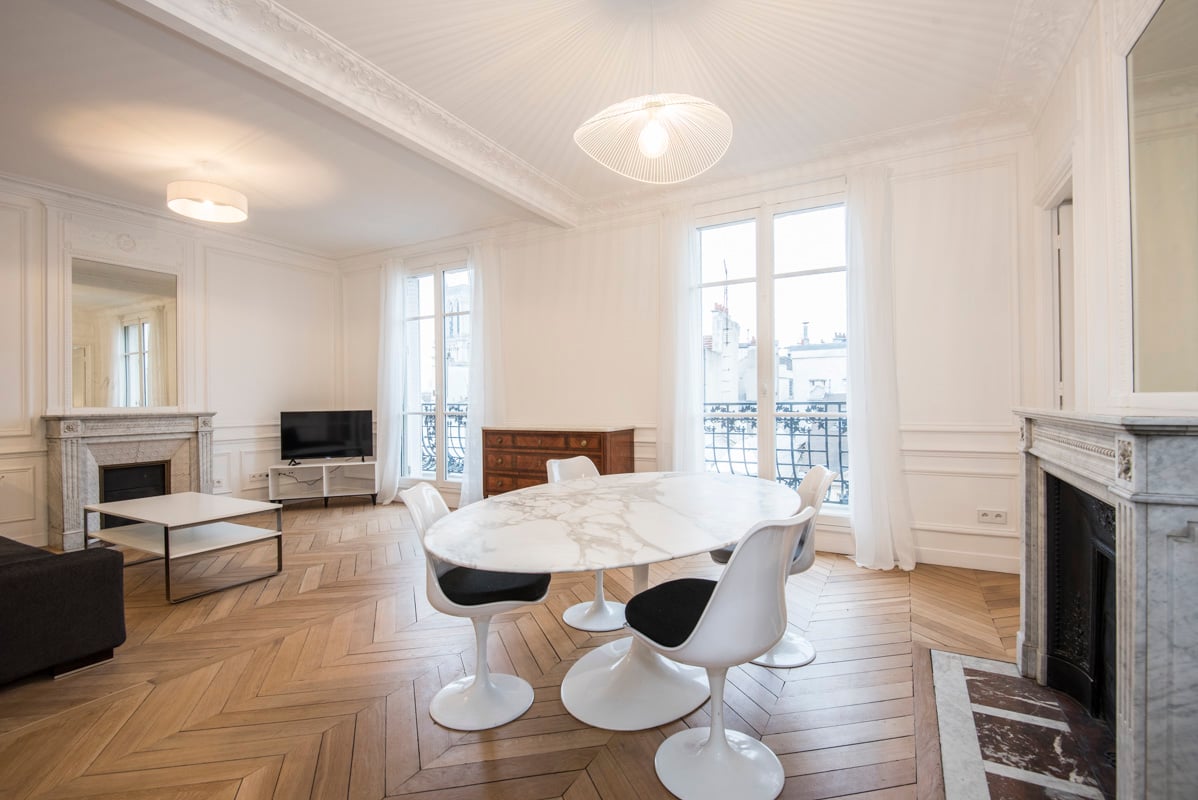 Situé dans un immeuble haussmannien, avec des parties communes en excellentes conditions, l'appartement est élégamment décoré, et dispose de parquet ainsi que de moulures.
