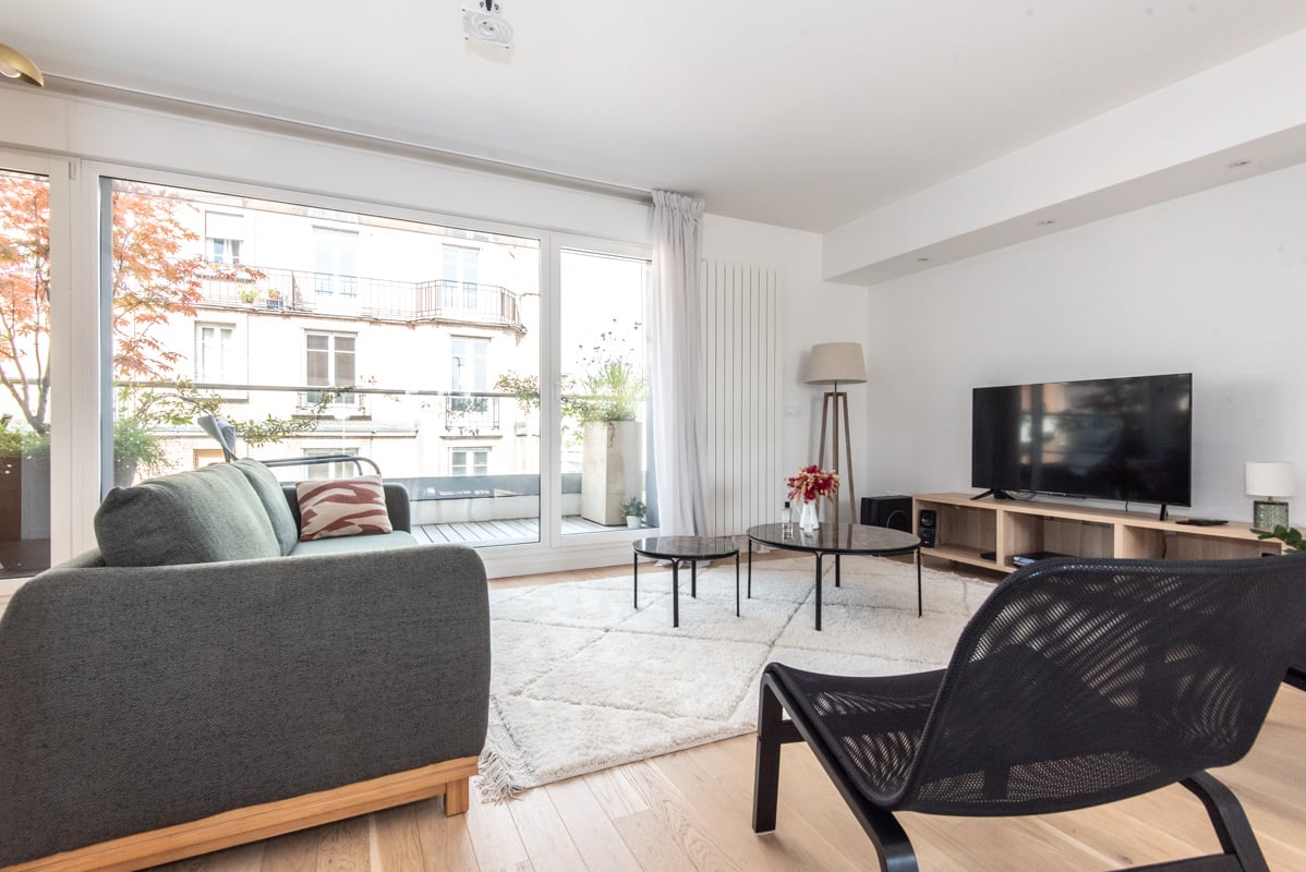 - Un grand séjour traversant ouvrant sur deux balcons. Calme.