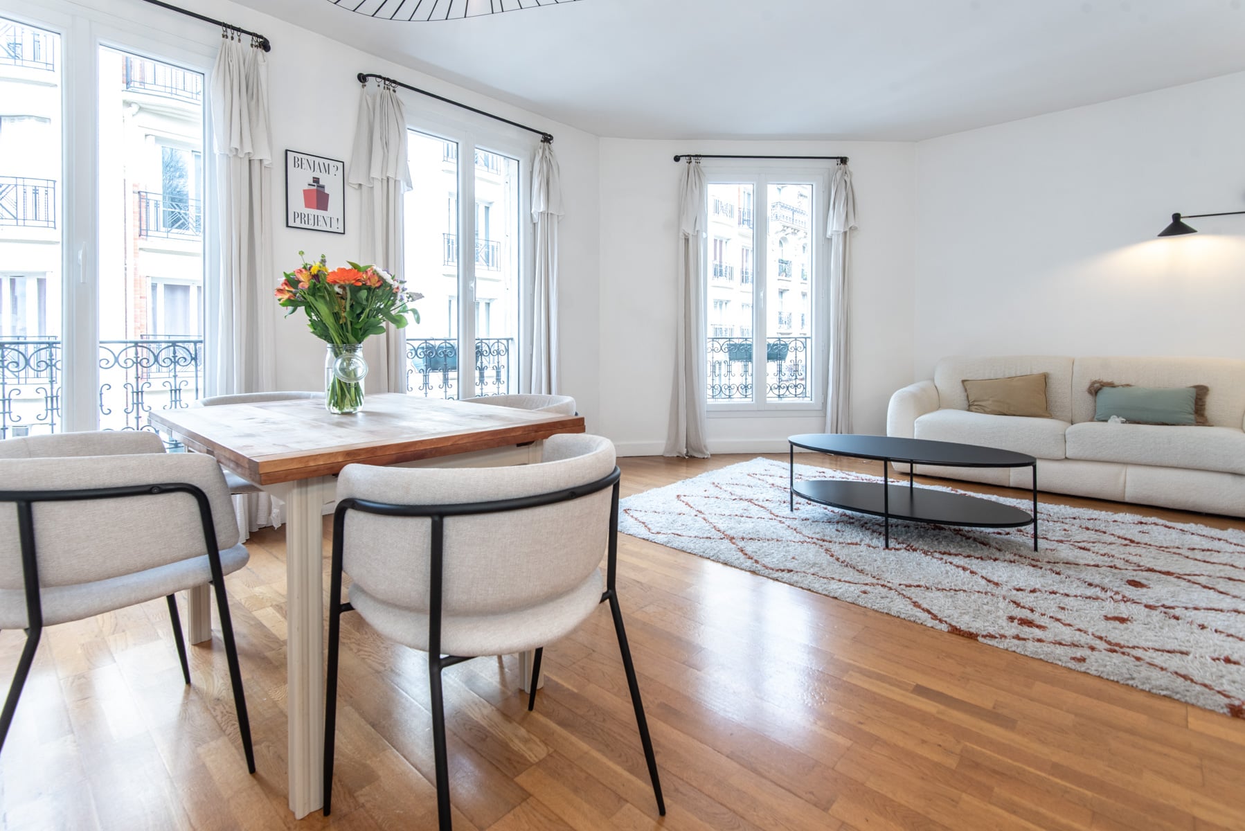 A proximité immédiate des transports (ligne 12 Lamarck Caulaincourt) et des commerces. Situé au troisième étage avec ascenseur d'un très bel immeuble sécurisé et entretenu. Bel appartement de trois pièces meublé en excellent état de 56m² loi Carrez, séduit par sa luminosité exceptionnelle et son calme absolu.