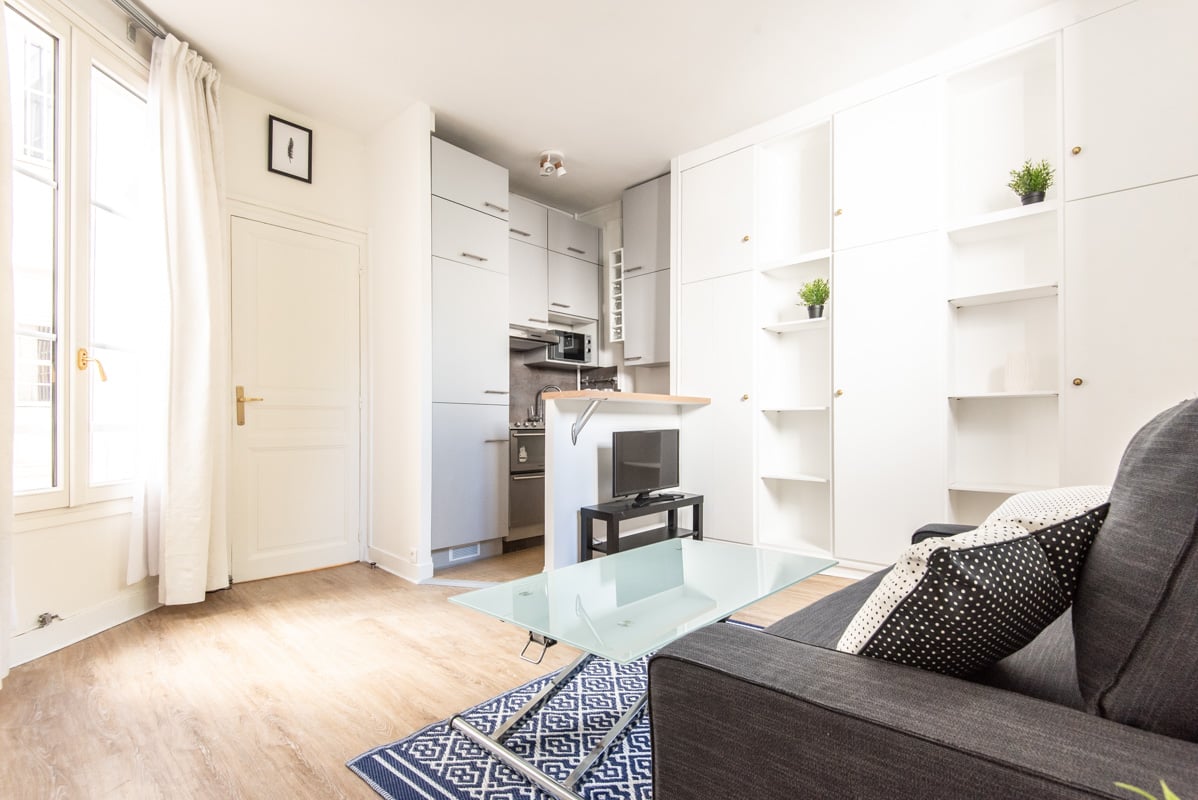 Appartement meublé refait à neuf situé rue Mazarine à Paris dans le 6ème arrondissement à proximité des stations Mabillon (ligne 10) et Saint-Germain-des-Prés (ligne 4).