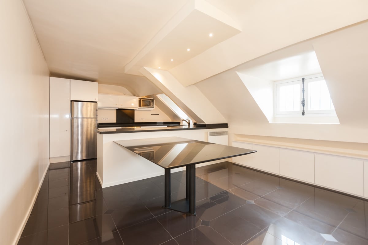 - Une cuisine équipée séparée au 6ème étage, rénovée récemment. Electroménager haut de gamme. Grande table en marbre.