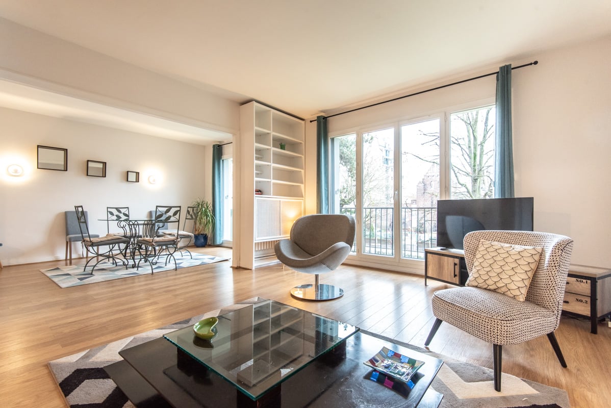 Furnished apartment located on boulevard Bineau Neuilly-sur-Seine close to metro stations Pont de Neuilly (line 1) and Pont de Levallois (line 3).