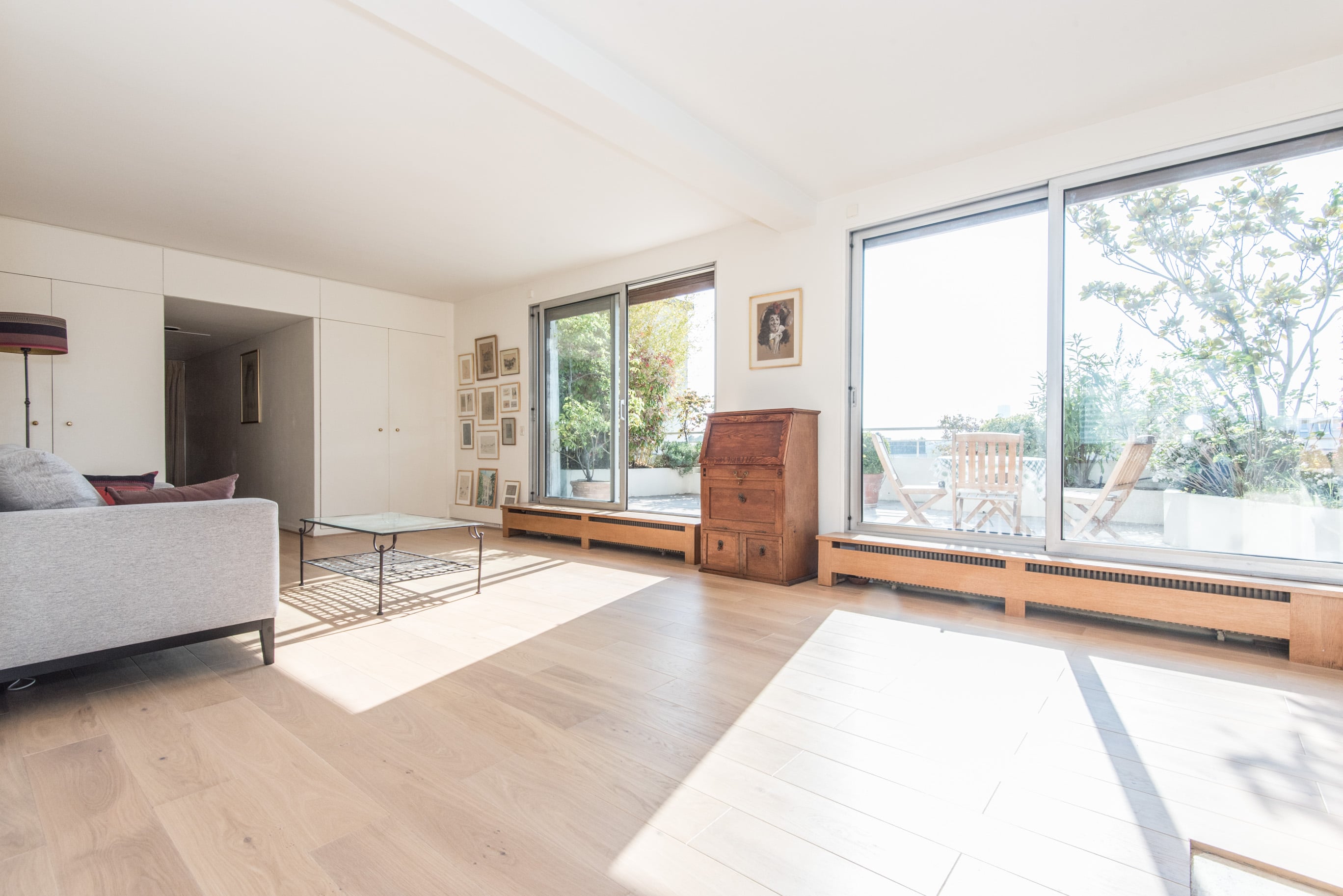 - A double living room opening on an exceptional terrace of 35 sqm with unobstructed view over the Eiffel Tower and Paris.