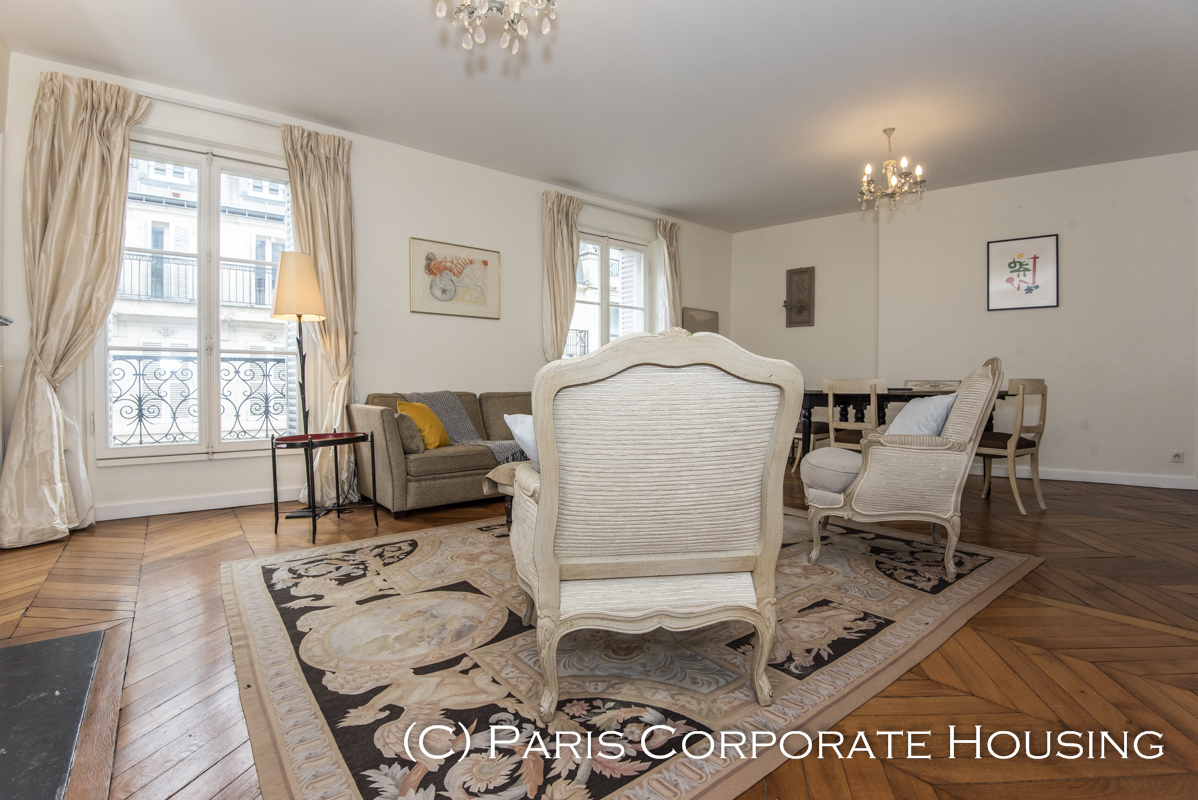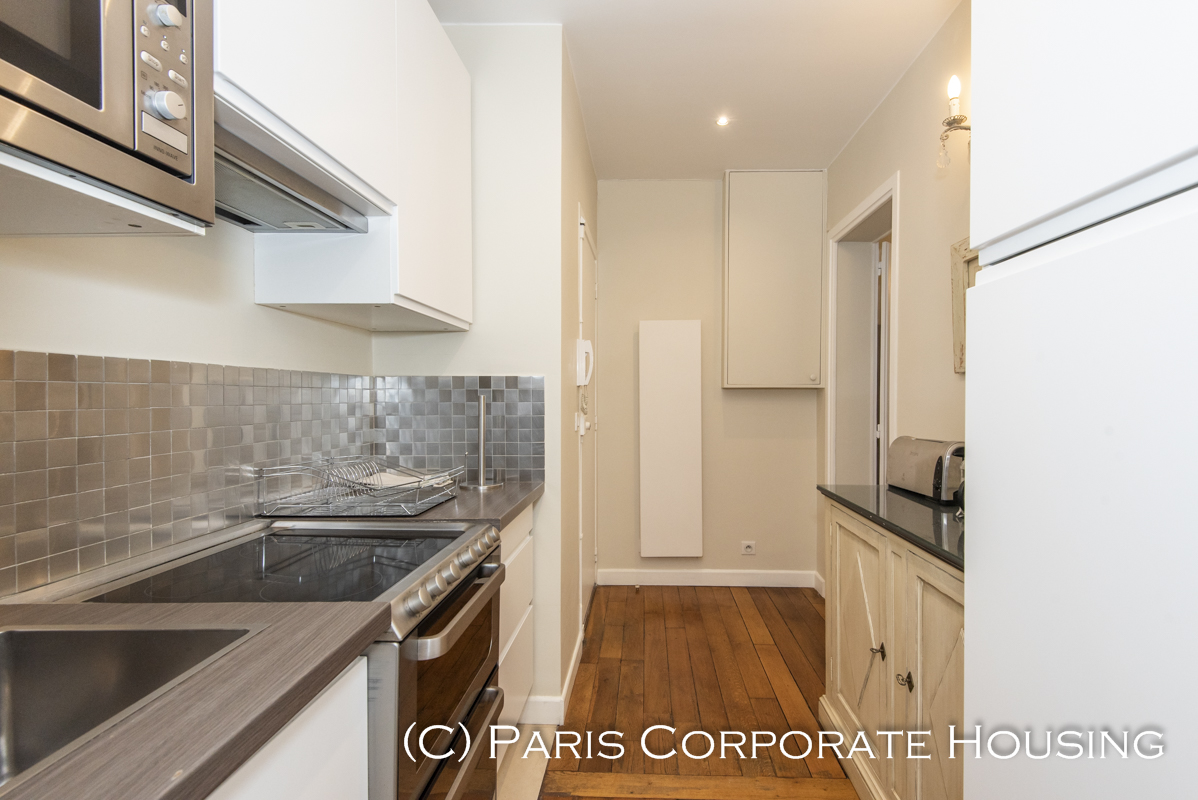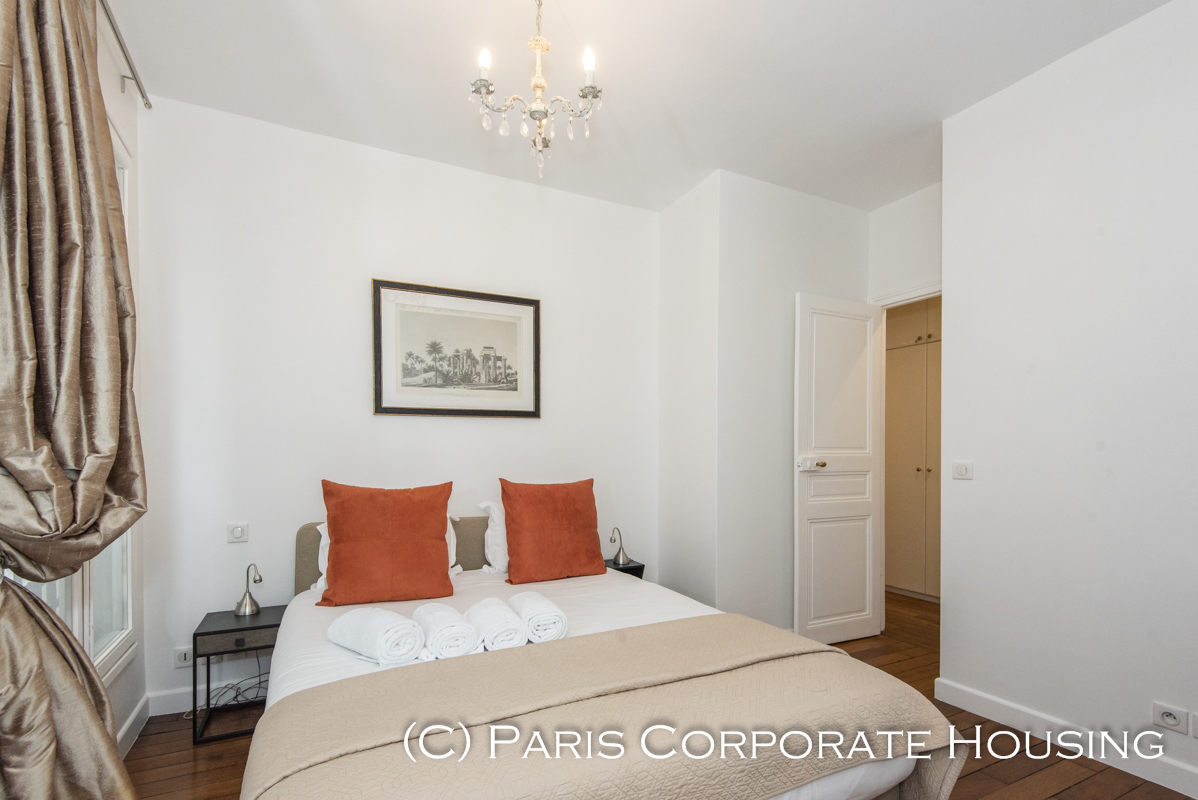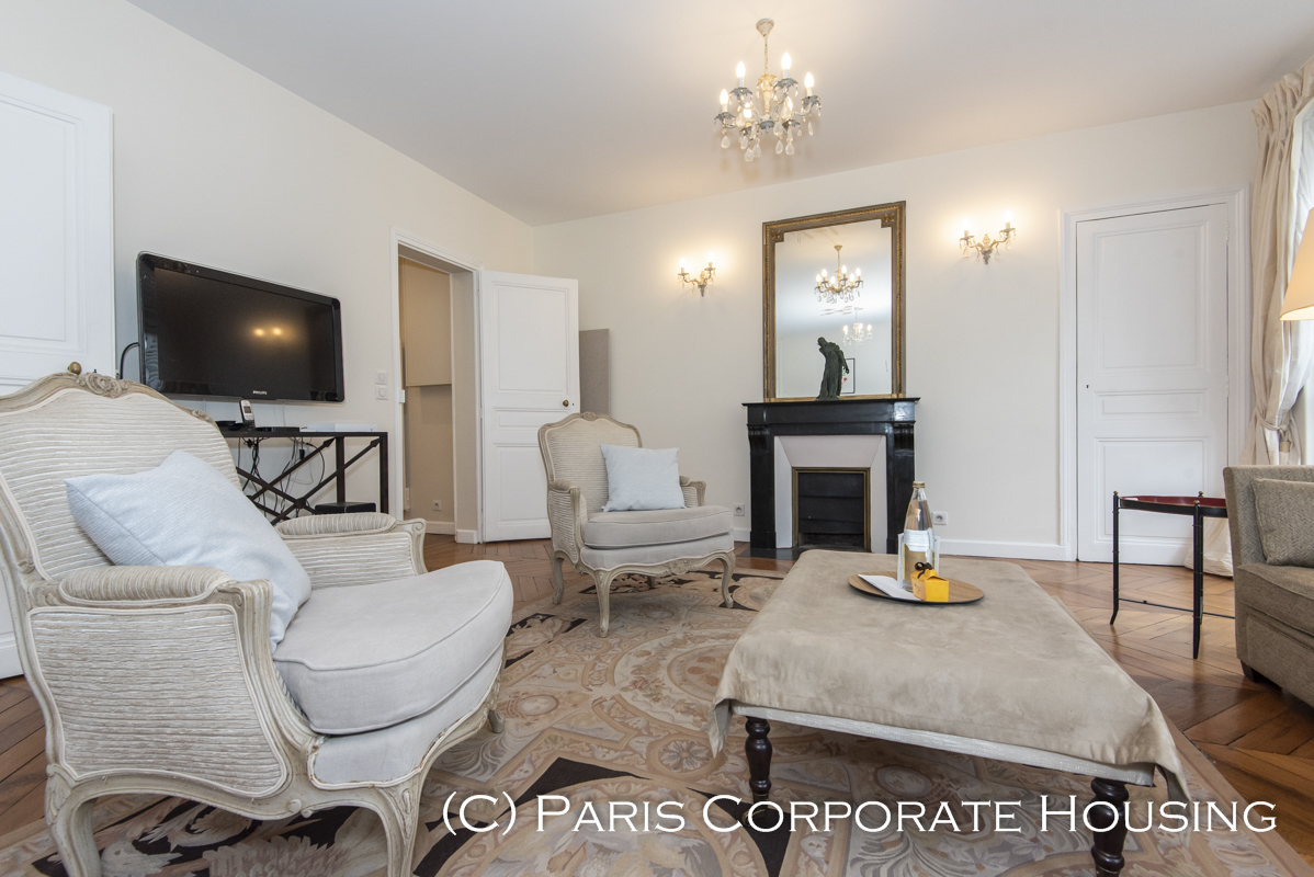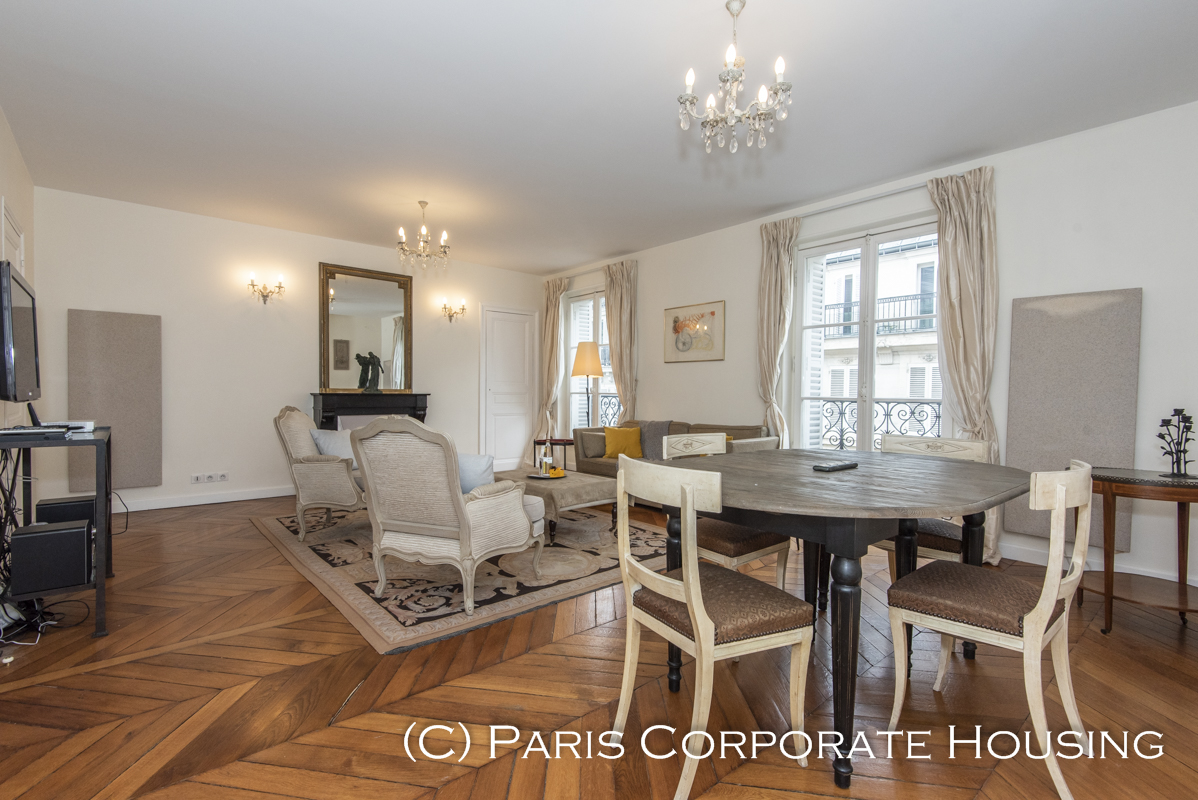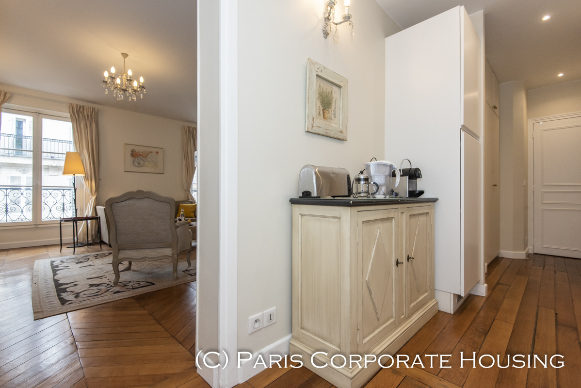 In a Haussmann building, with common areas in excellent conditions. The apartment was recently renovated. Upscale furniture, refined, contemporary, elegant decoration. Hardwood flooring, moldings.
