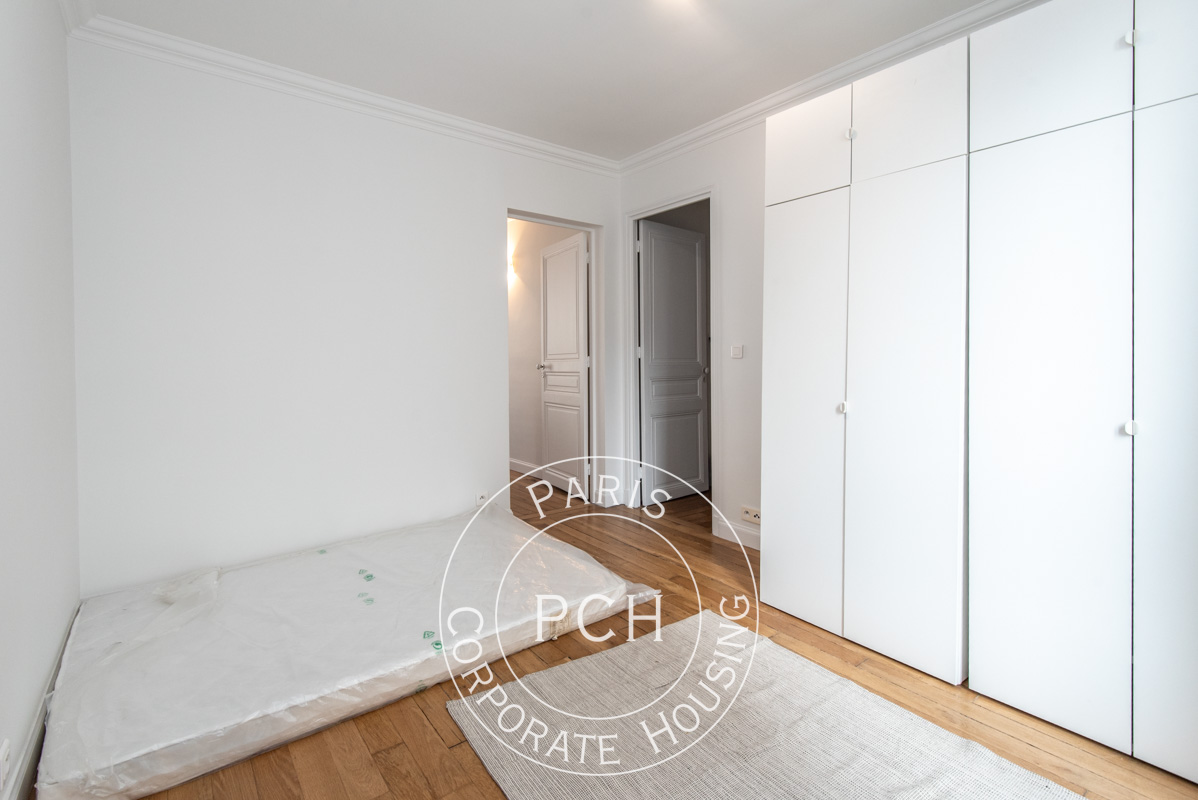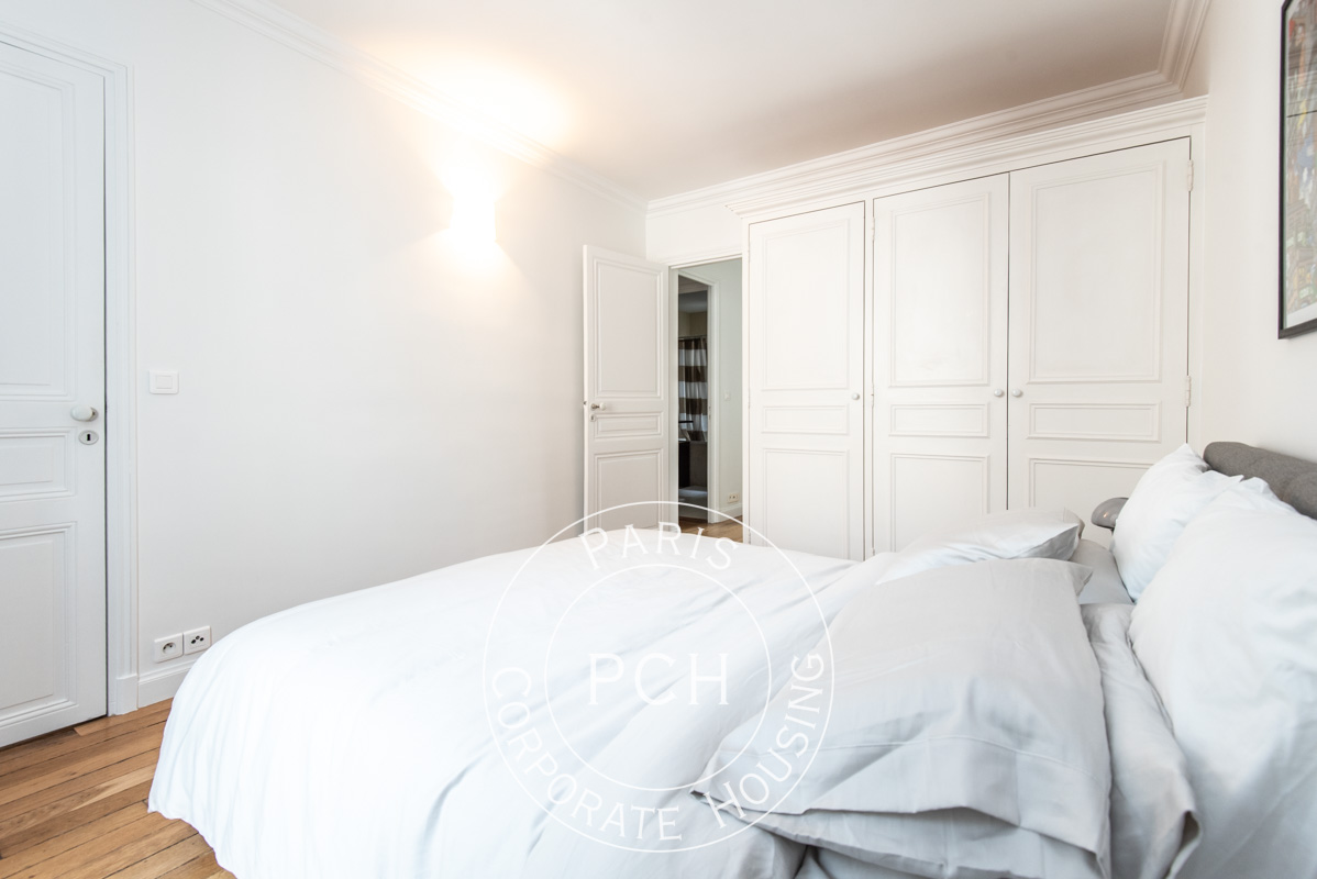 - A first bedroom with a double bed. Another bedroom with flexible furnishing options for bedding.