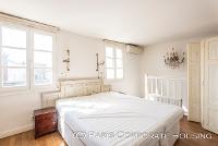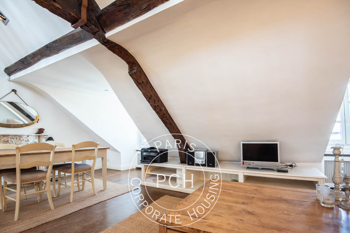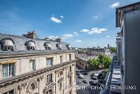 In a Haussmann building, on the top floor with an elevator. The apartment was recently renovated. Upscale furniture, refined, contemporary, elegant decoration. Hardwood flooring, moldings.