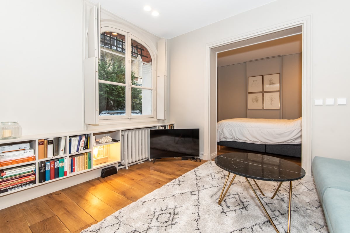 Renovated furnished apartment located rue de la Tourelle in Boulogne-Billancourt, near the Molitor swimming pool and the Jean Bouin stadium. A 10-minute walk from the stations Porte d'Auteuil (line 10) and Porte de Saint-Cloud (line 9). High-end furniture, refined decoration, elegant. Parquet.