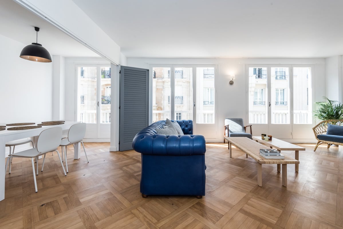On the 4th floor: - A large living room and dining room fully open, large bay windows. Very bright.