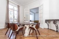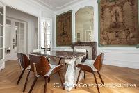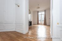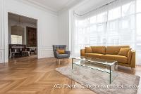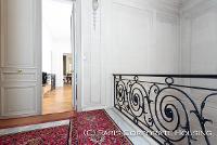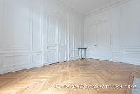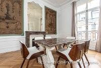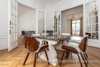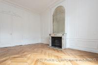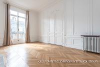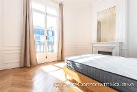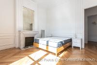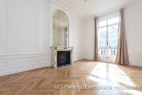 Dans un bel immeuble haussmannien de très grand standing, avec des parties communes en excellentes conditions. Mobilier haut de gamme, décoration raffinée, élégante. Parquet, moulures, cheminée.